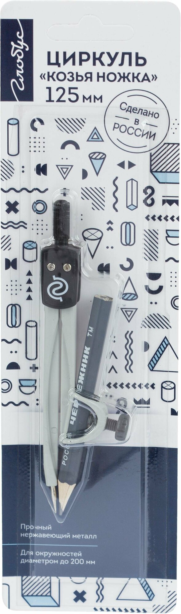 Циркуль GLOBUS ЦНК-40БС Козья ножка, 125 мм, в блистере с карандашом, серый (ЦКН-40БС)