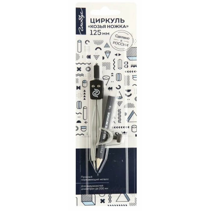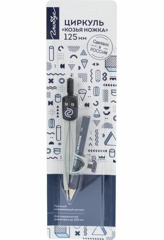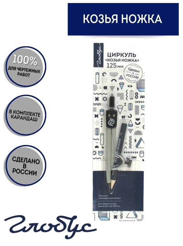 Циркуль Глобус ЦНК-40БС Козья ножка, 125 мм, в блистере с карандашом, серый интересное:
