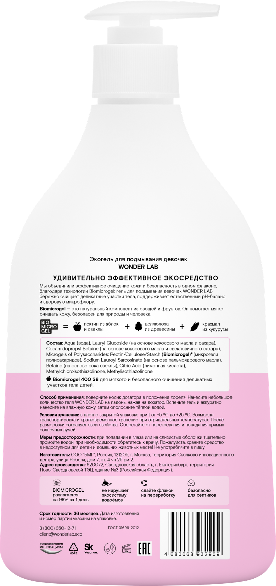 Купить WONDER LAB Экогель для подмывания девочек, 540 мл