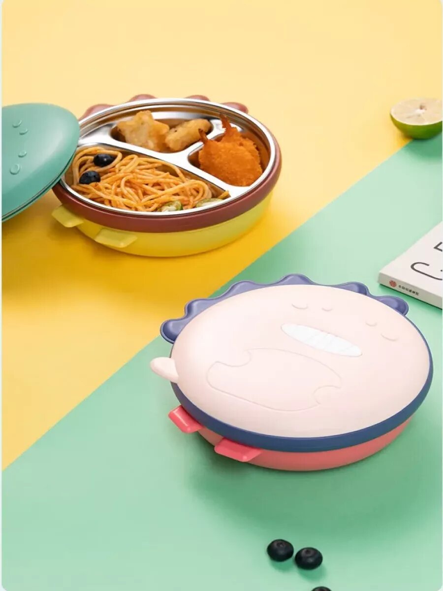 Термотарелка секционная для кормления малышей, с крышкой, Kiidsy