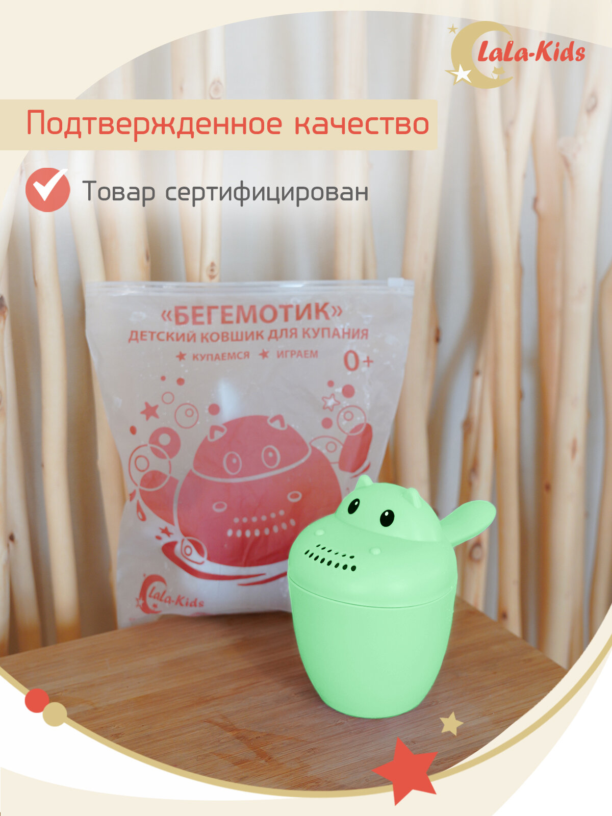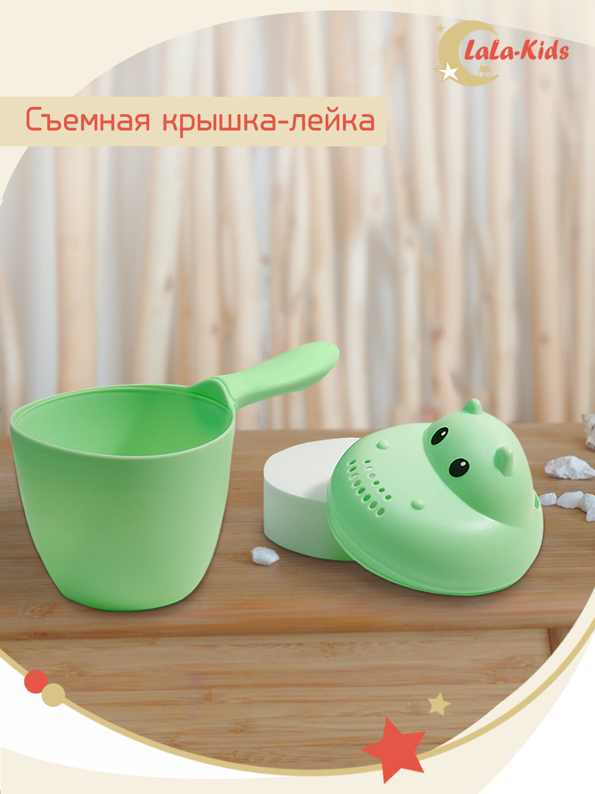 Купить Ковш для купания LaLa-Kids лейка "Бегемотик" 500 мл. зеленый