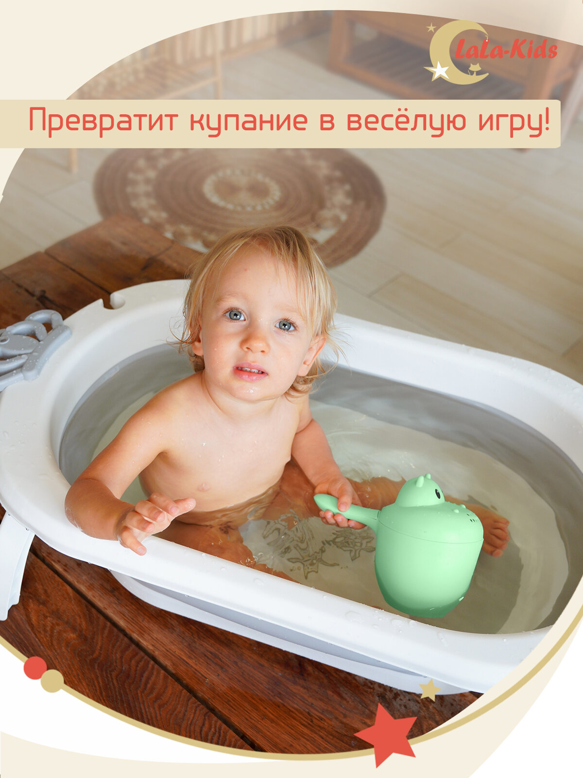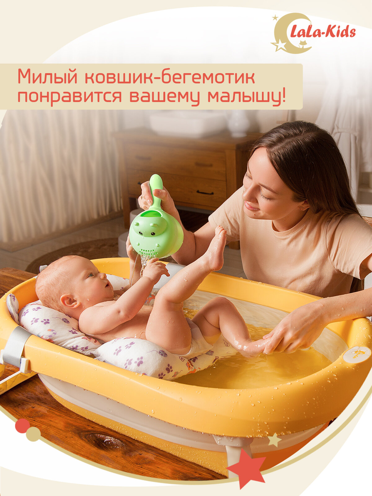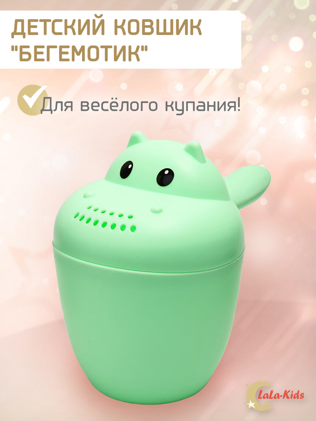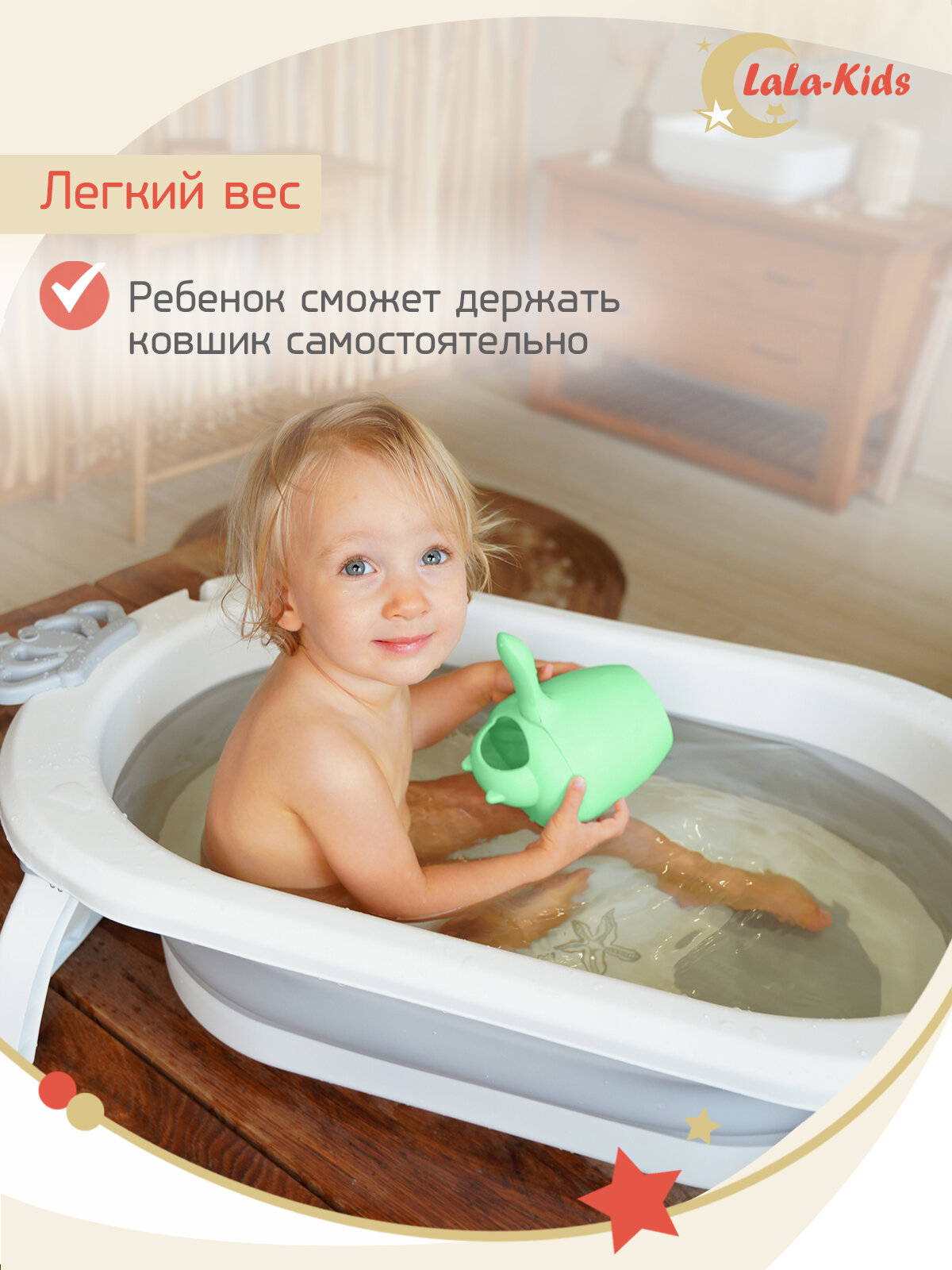 Ковш для купания LaLa-Kids лейка "Бегемотик" 500 мл. зеленый интересное: