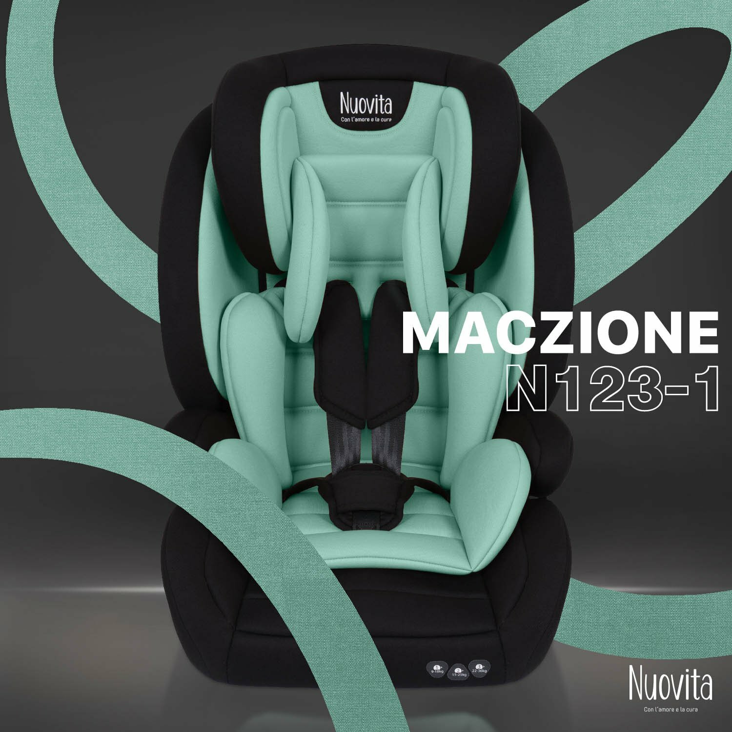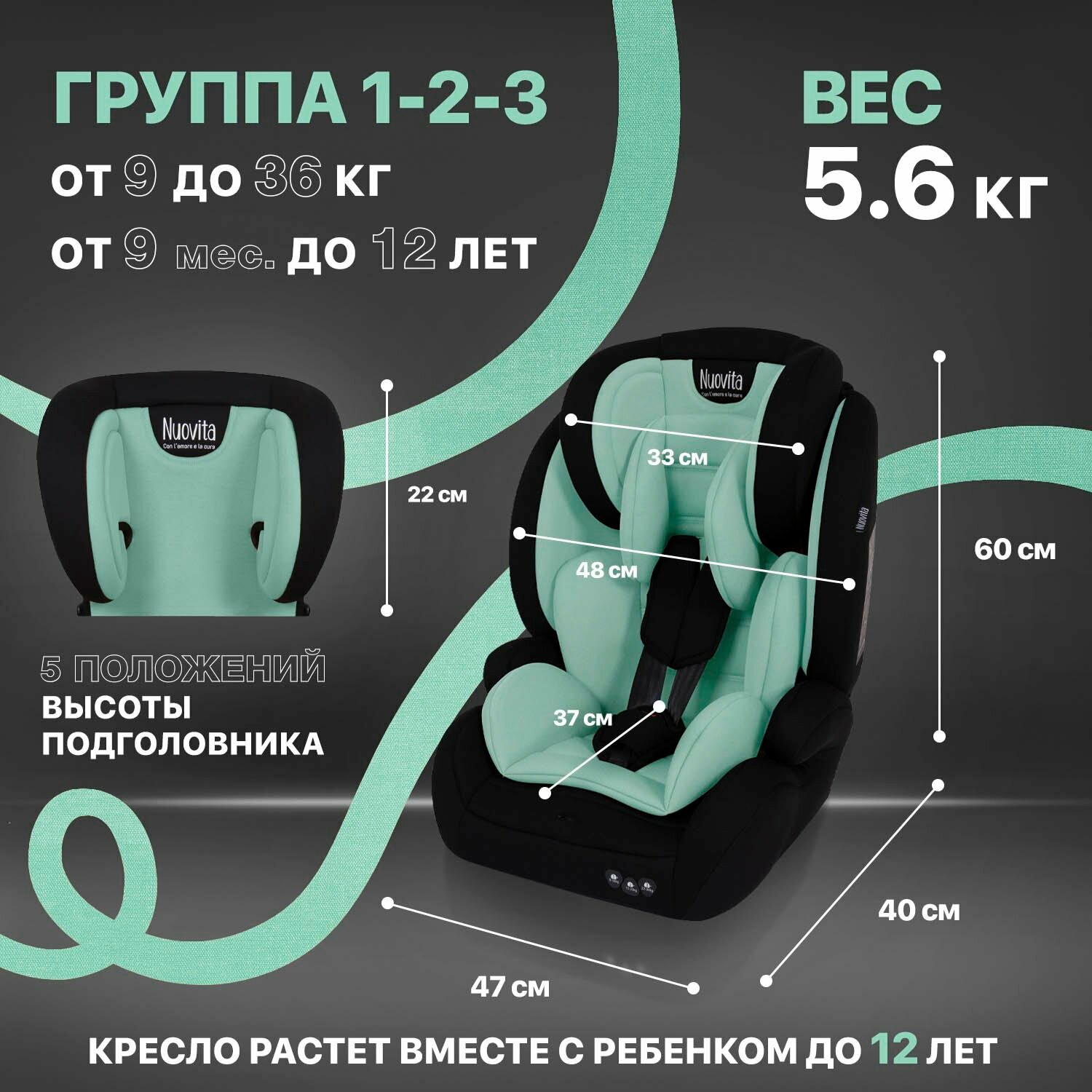 Автокресло детское Nuovita Maczione N123-1, группа 1/2/3, от 9 мес до 12 лет, весом от 9 до 36 кг/ трансформируется в бустер (Nero/Чёрный)