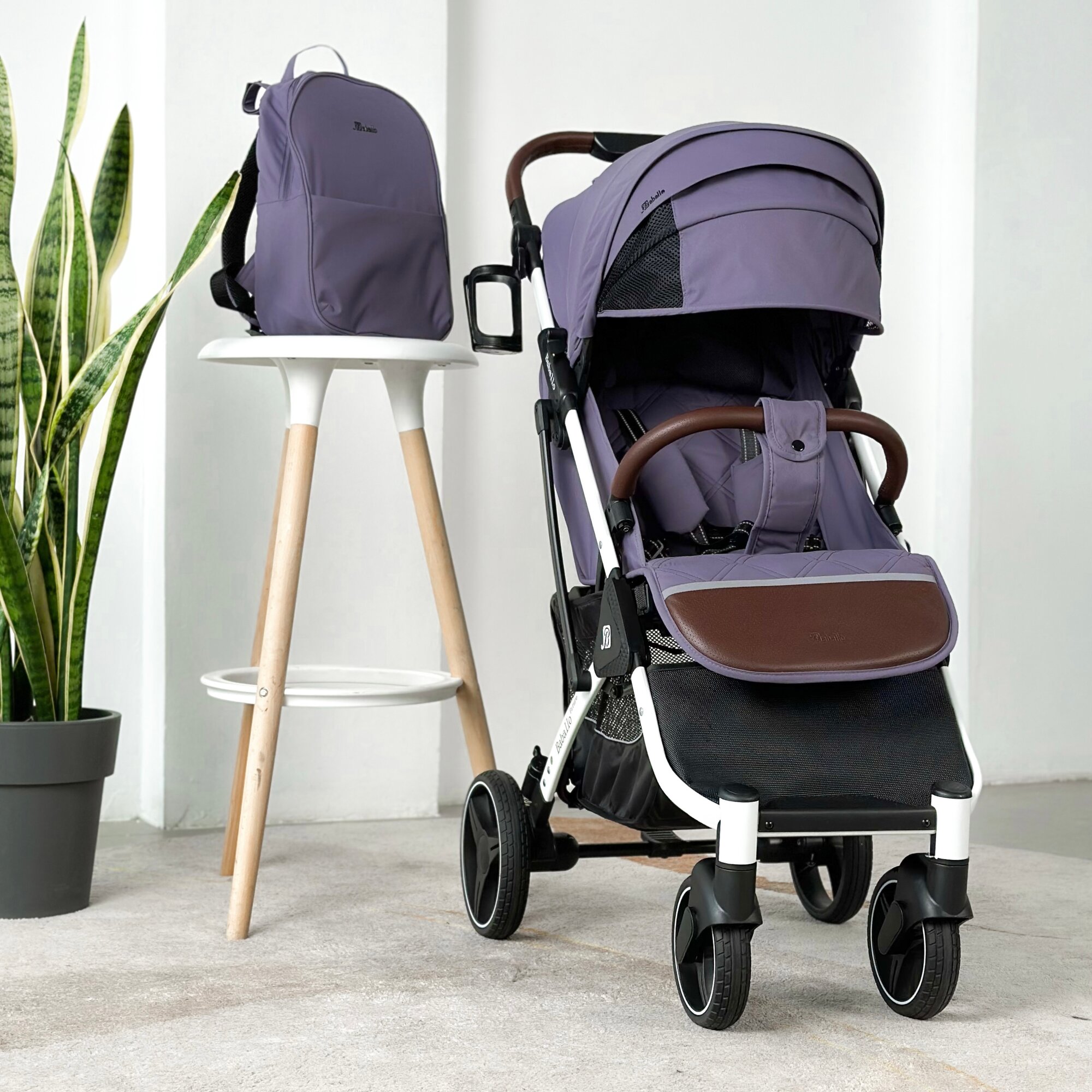 Коляска прогулочная Baballo 2024 фиолетовая/белая рама + рюкзак (механическая регулировка спинки)