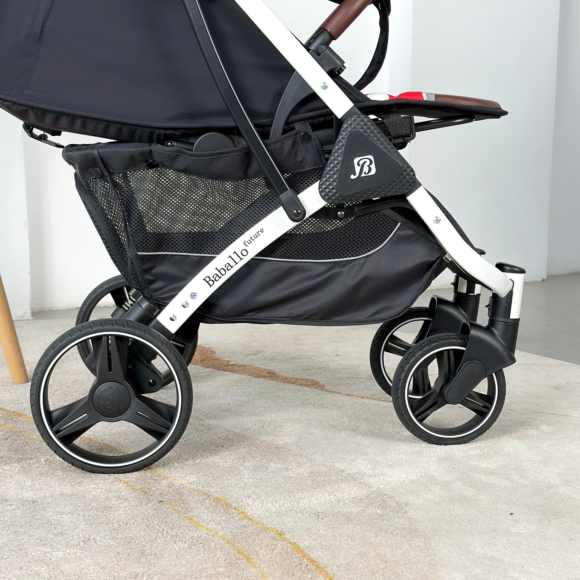 Коляска прогулочная Baballo 2024 черная/белая рама + рюкзак (механическая регулировка спинки)