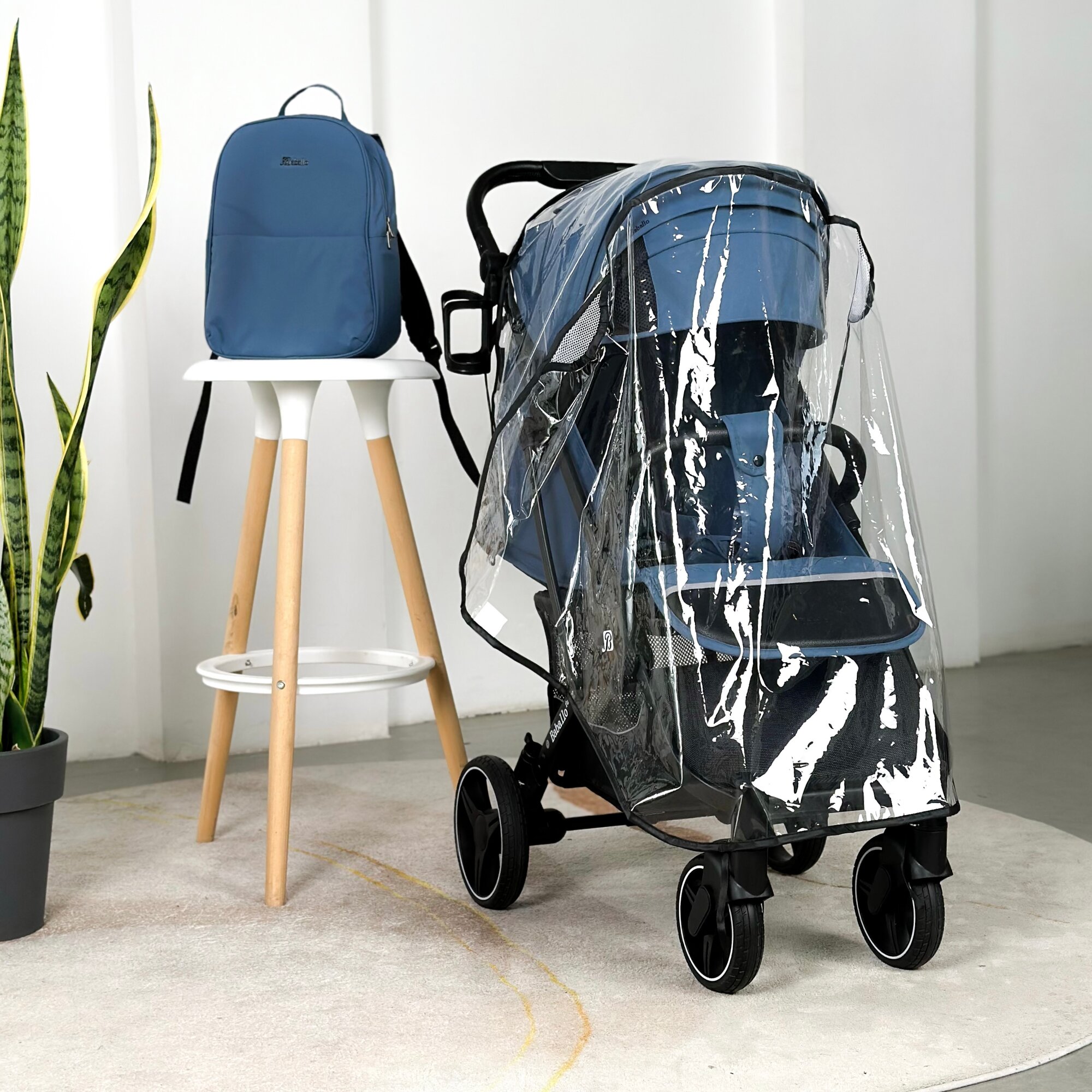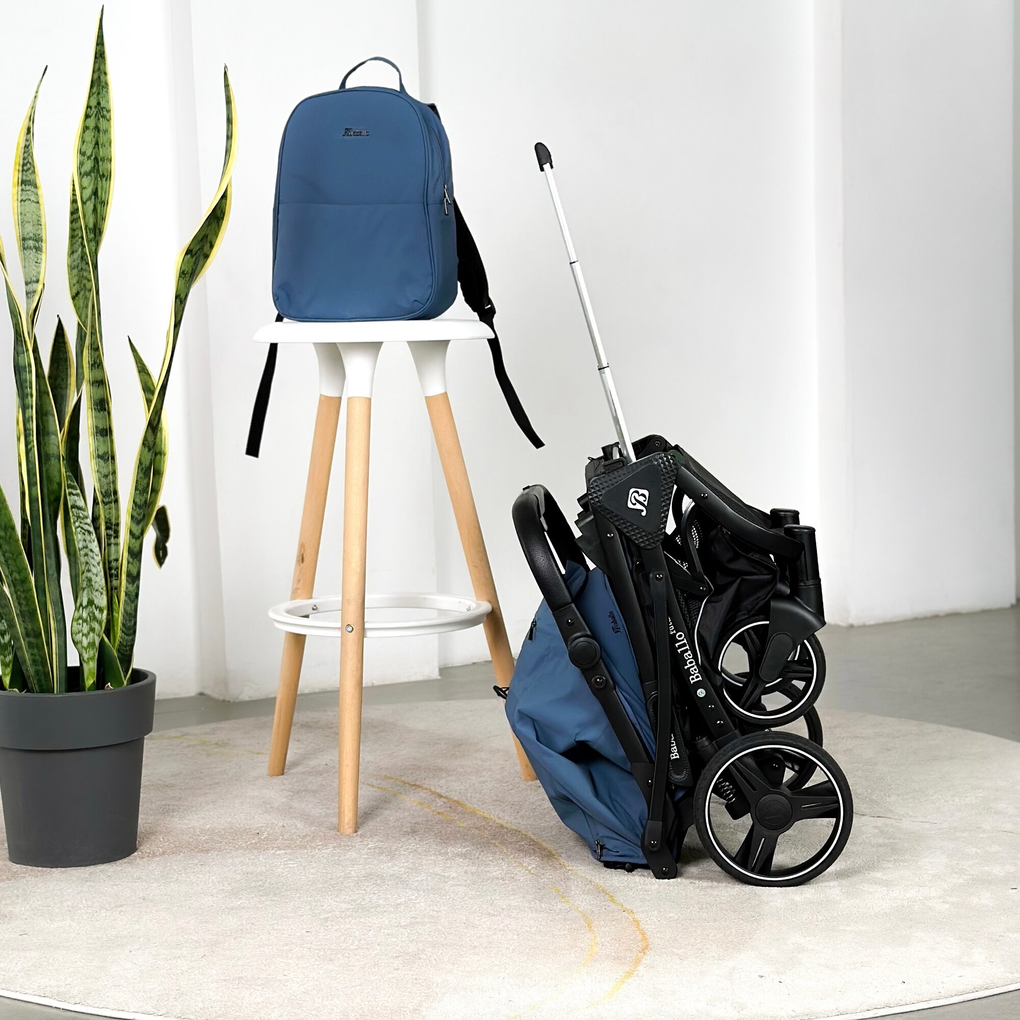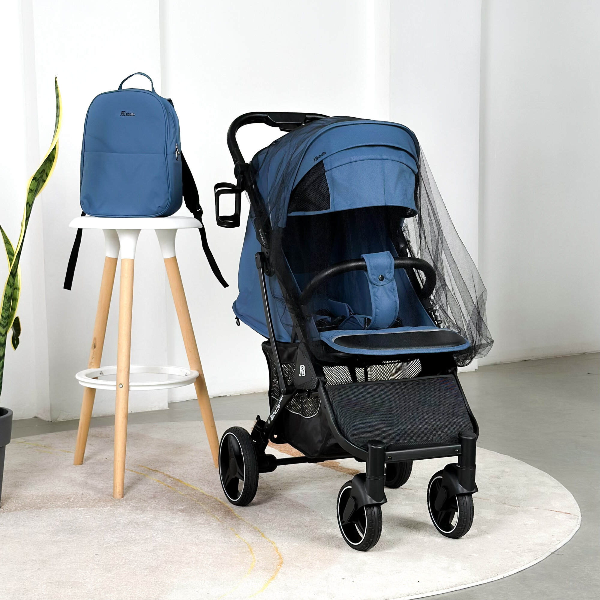 Купить Коляска прогулочная Baballo 2024 ORIGINAL темно-синяя/черная рама + рюкзак (механическая регулировка спинки)