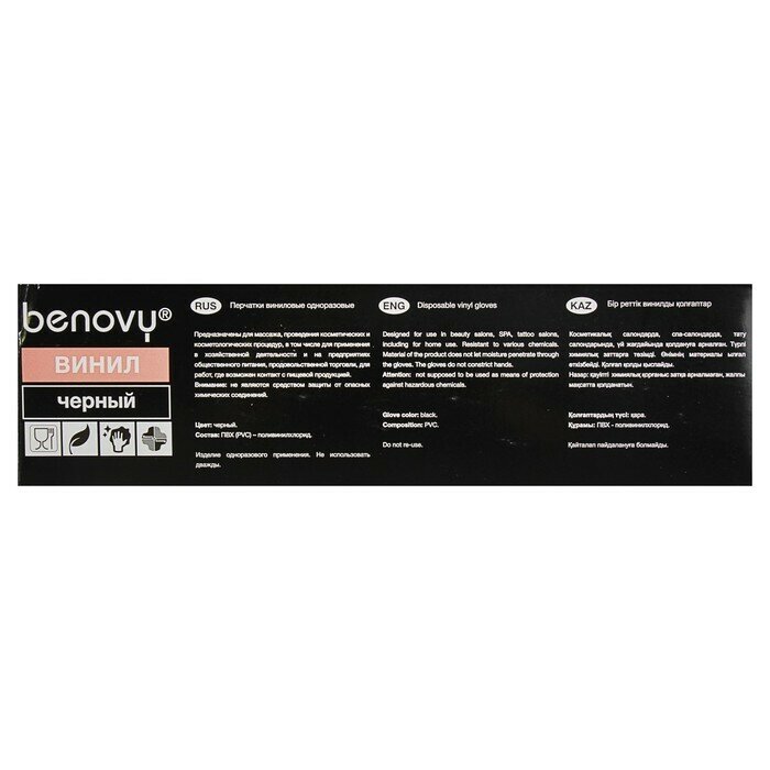 Перчатки Benovy виниловые одноразовые, 50 пар, размер M, цвет черный