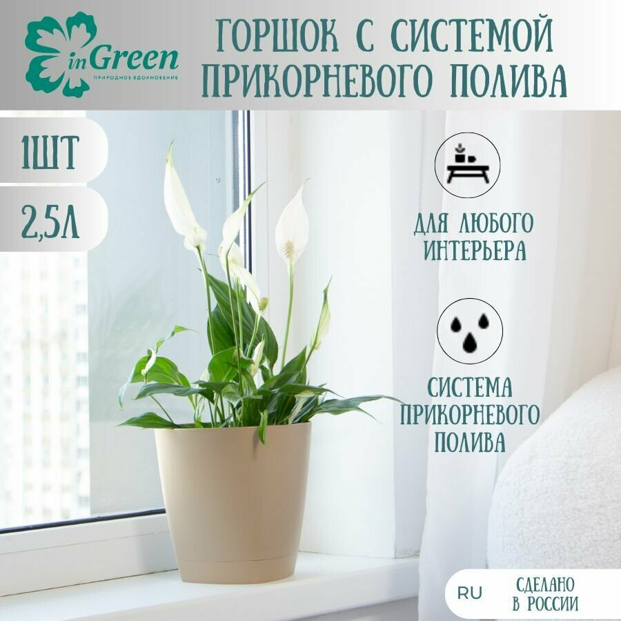 Горшок Ingreen для цветов Amsterdam D170, 2,5л, с прикорневым поливом (ING6200МШОК)