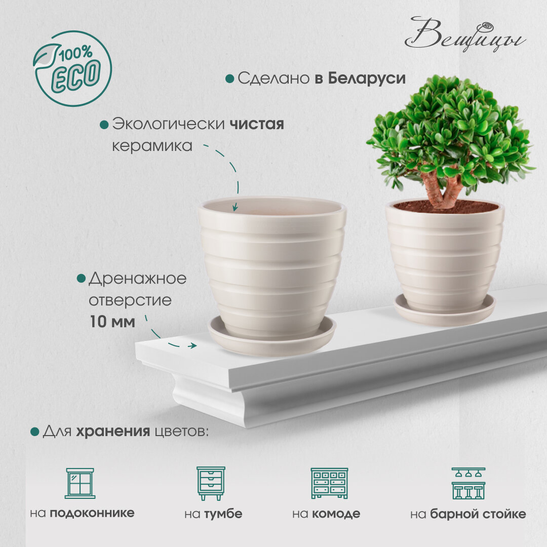 Керамический горшок цветочный ВеЩицы с подставкой блюдцем / Горшок для цветов с поддоном / Горшок для растений / объем 1,4 л, цвет капучино