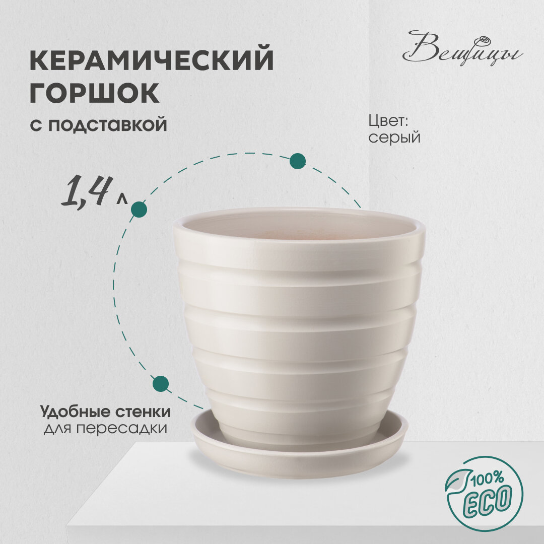 Керамический горшок цветочный ВеЩицы с подставкой блюдцем / объем 1,4 л, цвет серый