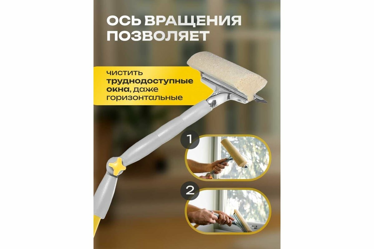 Стекломой, 25 см, с поворотной телескопической ручкой на 105-160 см, арт. 20676-A