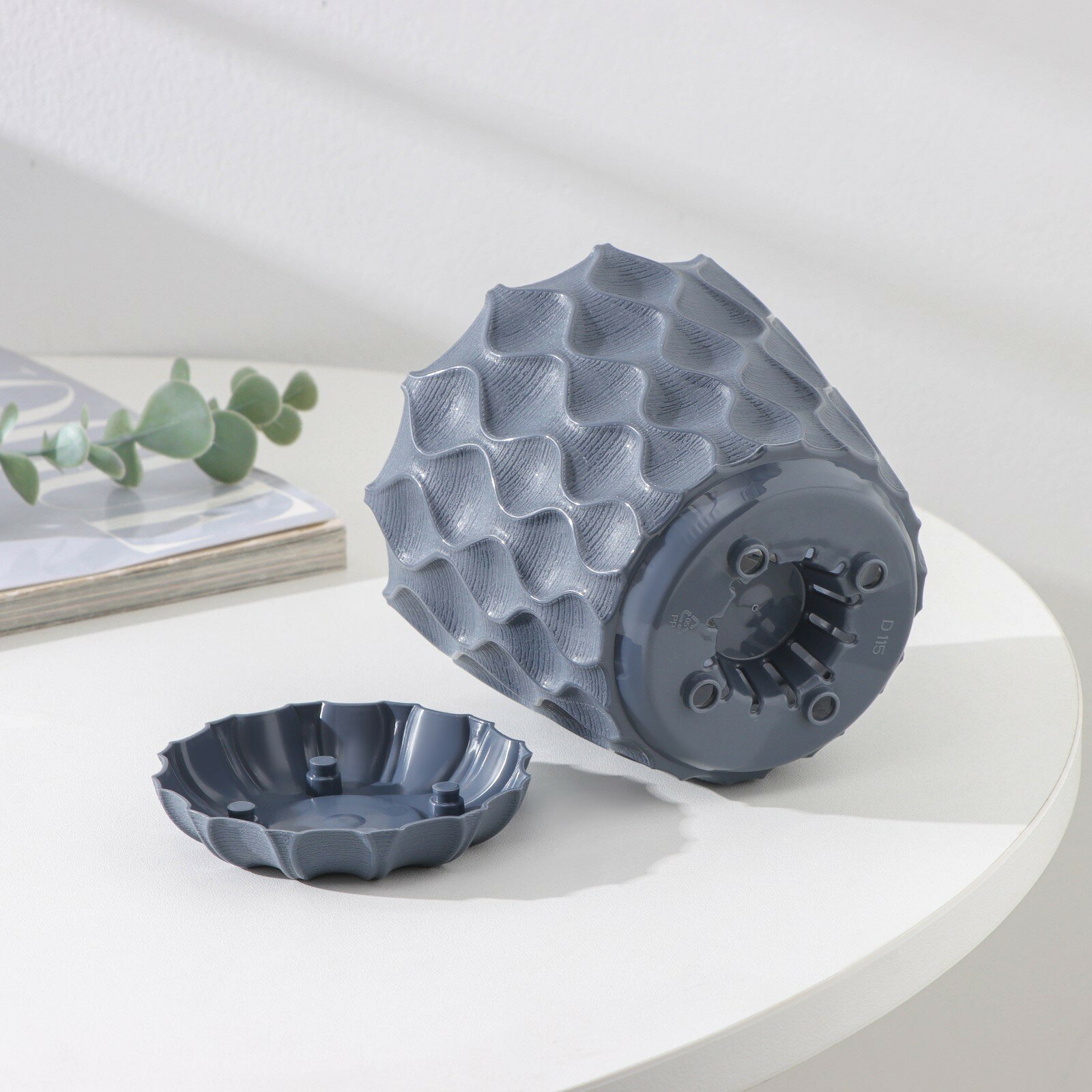 Горшок для цветов пластиковый 2,5л d-17,5см «Wave» с дренажной сеткой и съемным поддоном, вулканический серый