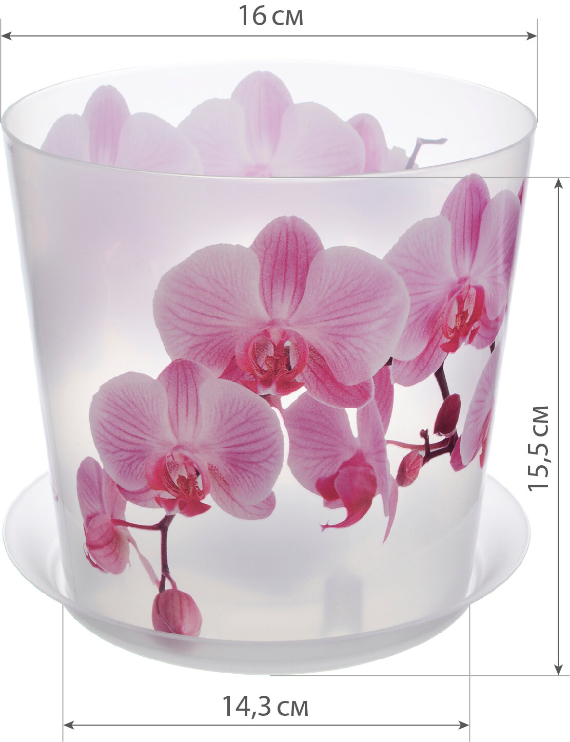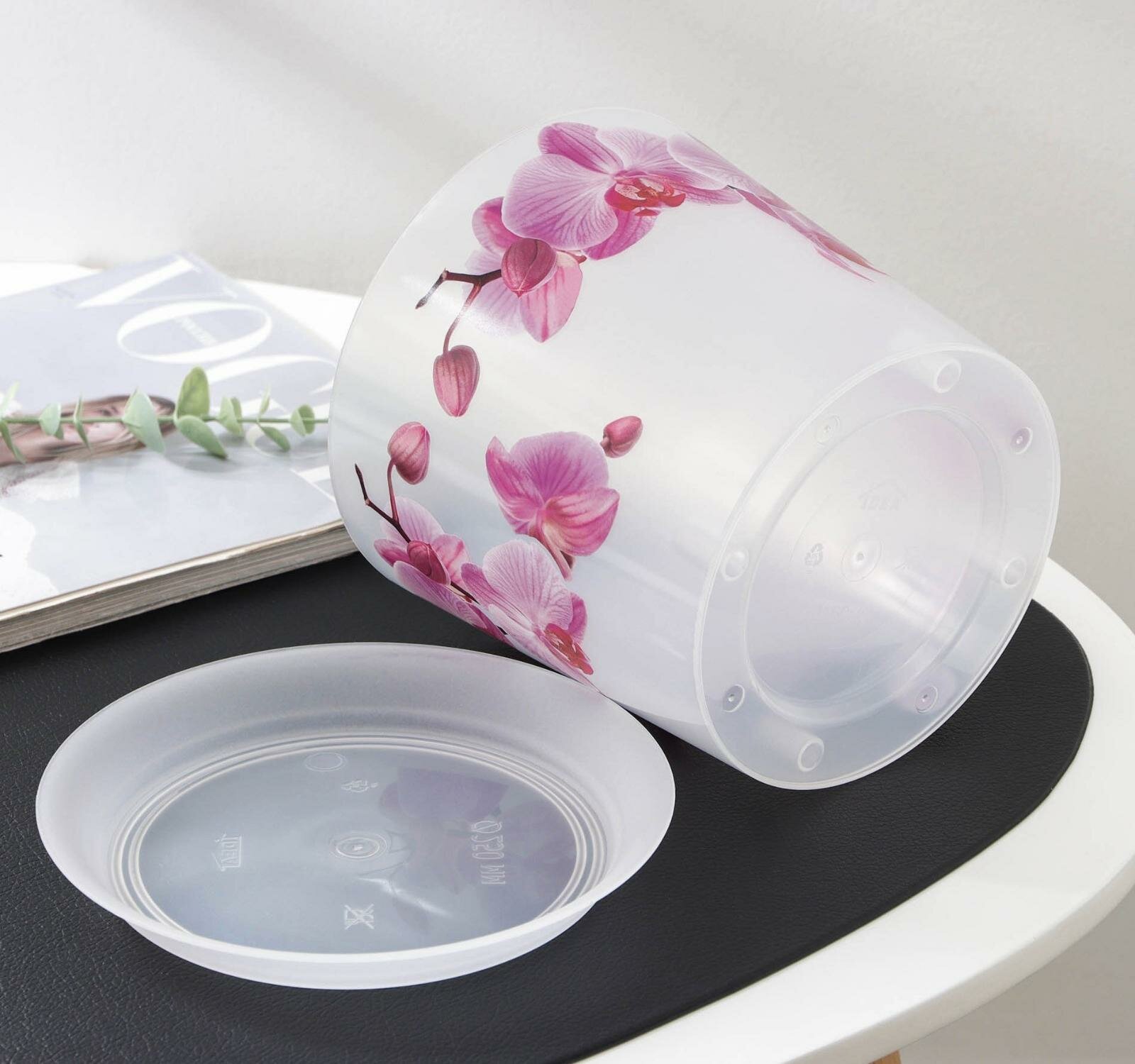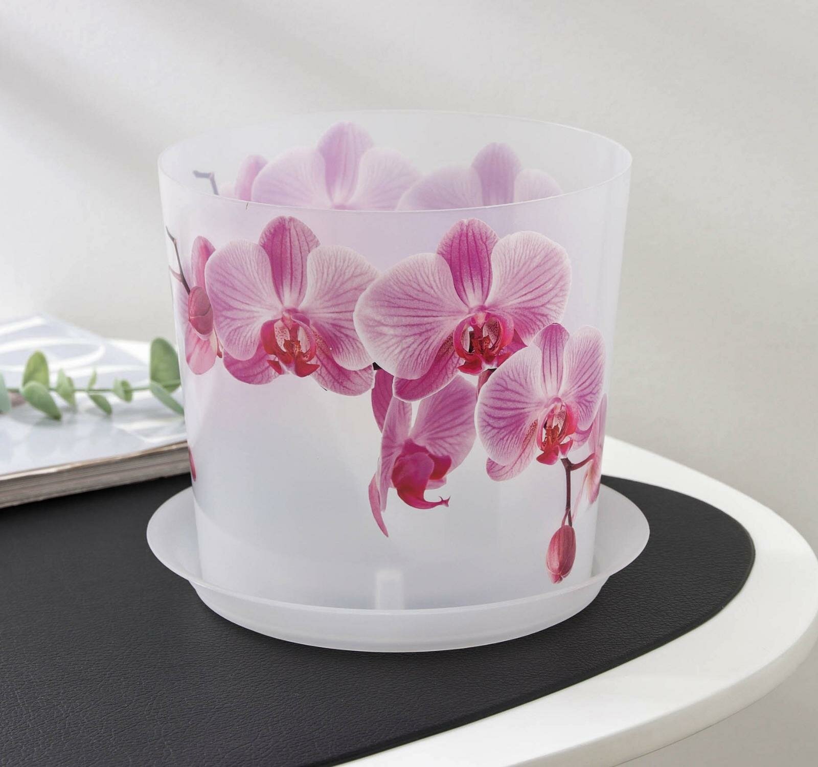 Горшок для цветов Орхидея d-180мм 3л розовый прозрачный, с поддоном