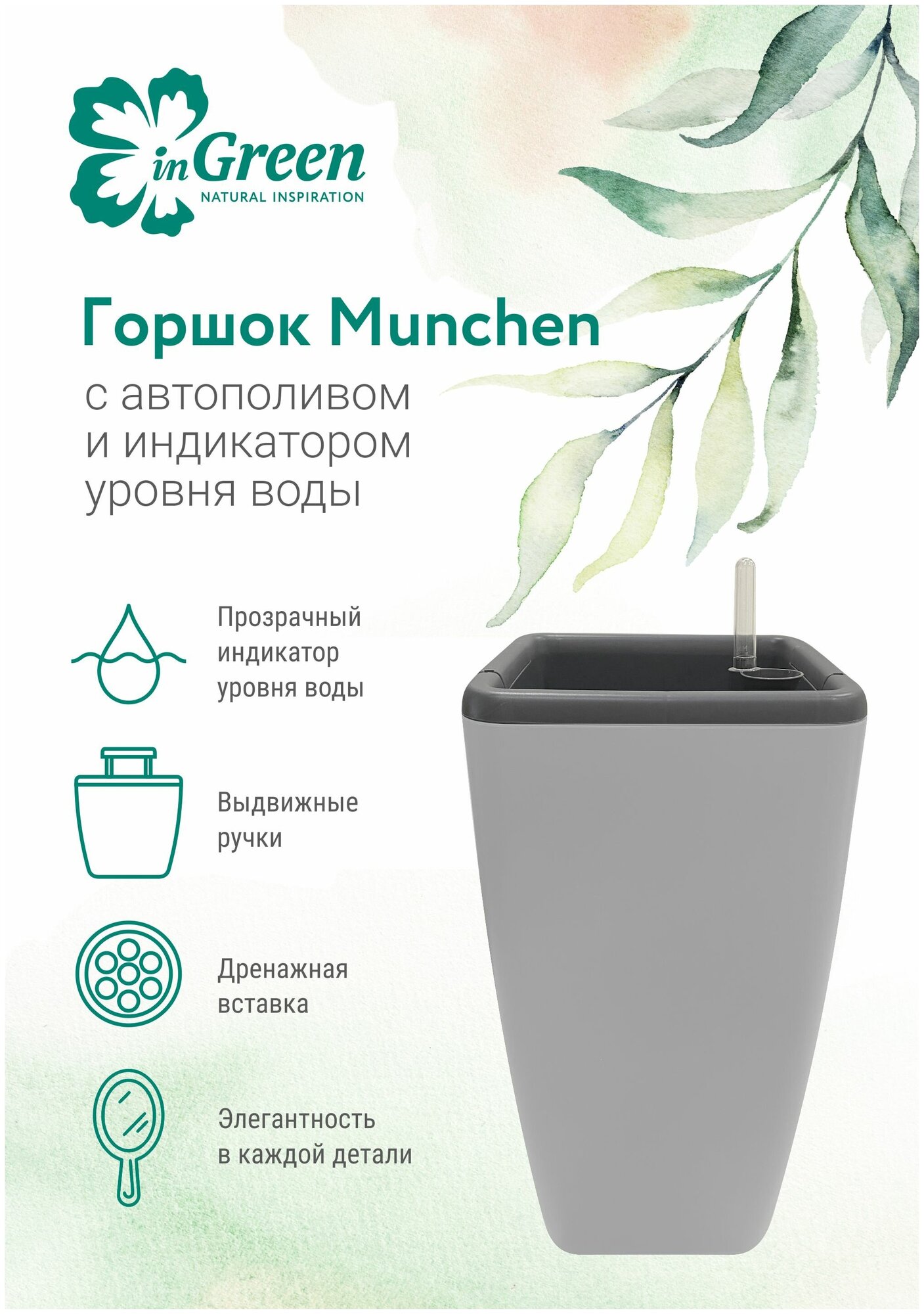 Горшок Ingreen для цветов Munchen 5 л, с прикорневым поливом, серый (IG622411026)