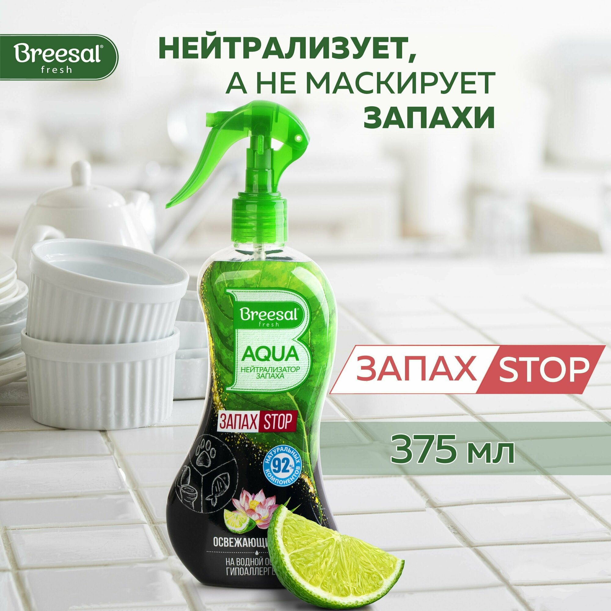 Нейтрализатор запаха для дома Breesal AQUA запахстоп "Освежающий микс", 375 мл, 2 шт