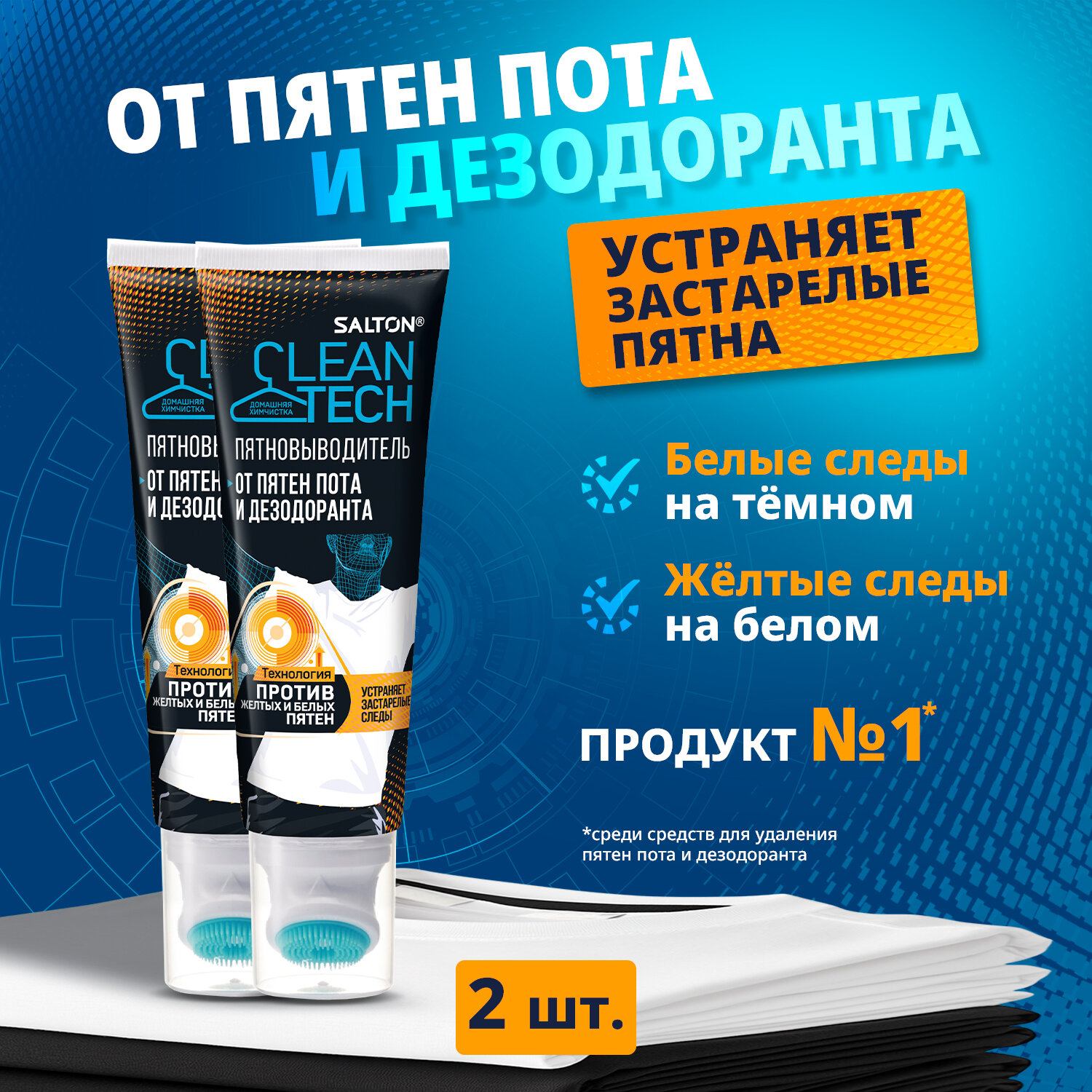 Комплект 2 штук, Пятновыводитель SALTON CleanTech от пятен пота и дезодоранта 120мл