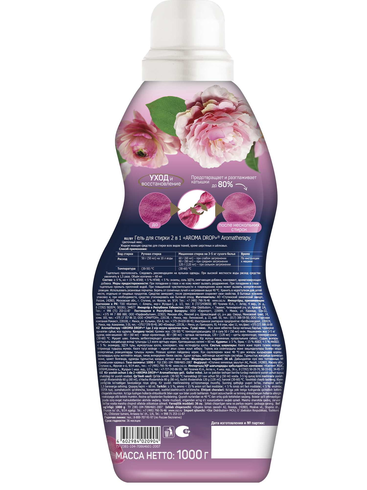 СохранитьГель для стирки Aroma Drop, 1 л, универсальный, Цветочный микс 2в1 интересное:
