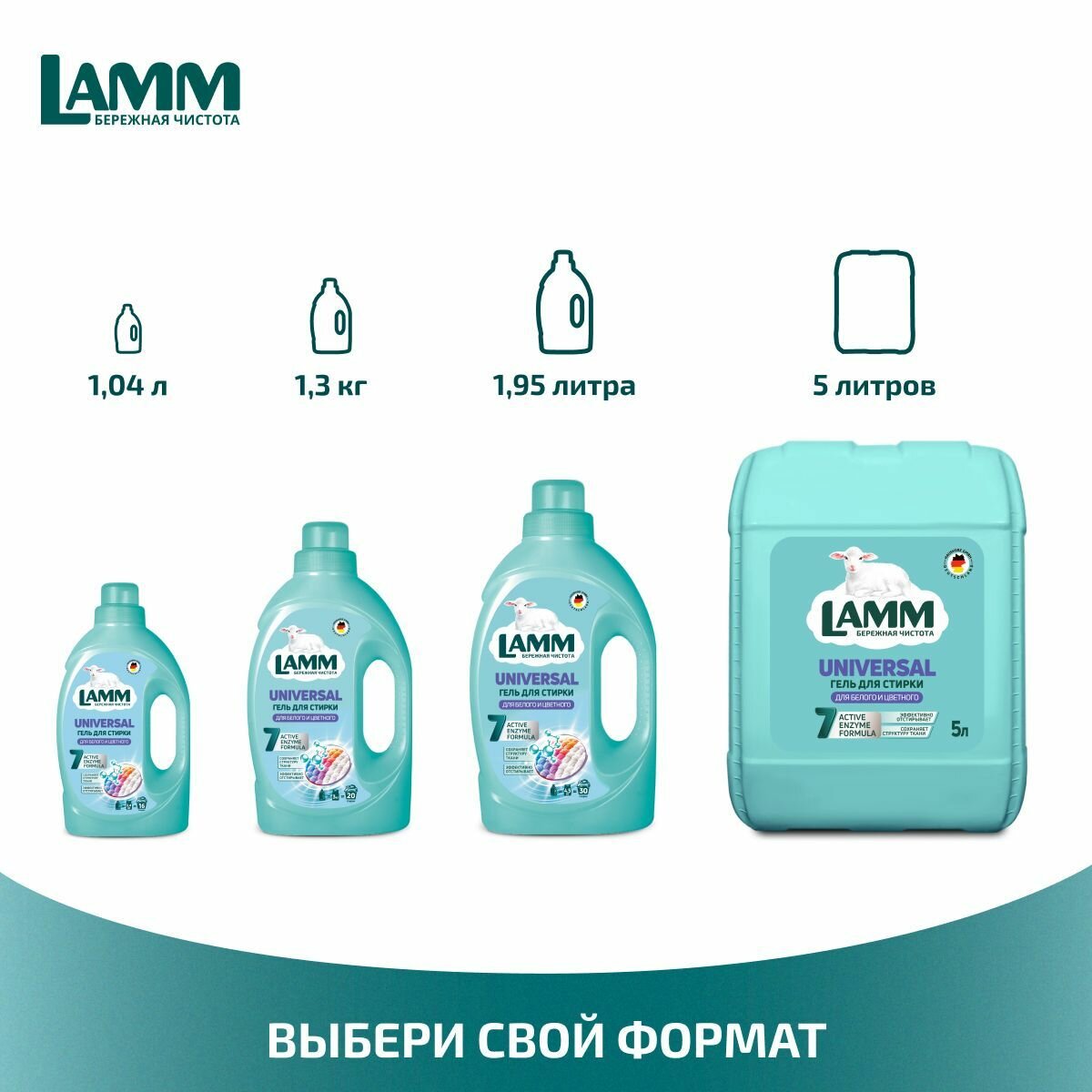 Гель для стирки LAMM "UNIVERSAL" Ламм универсальный 5 л, лам бесфосфатный, для белого, для цветного, для темного, гипоаллергенный, Лам