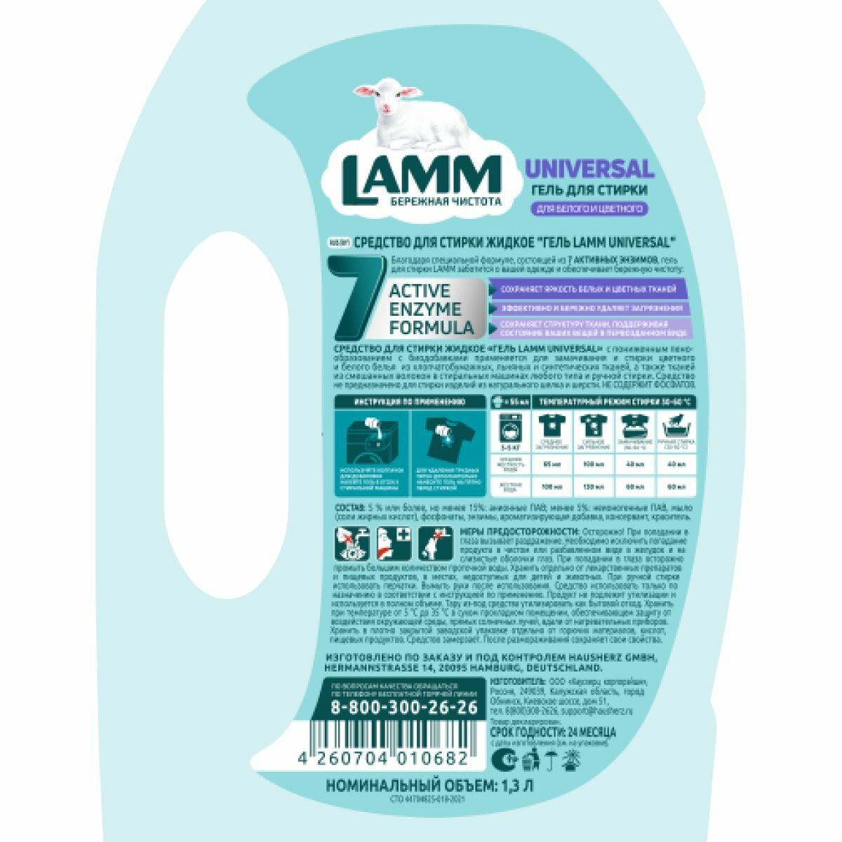 Гель для стирки Lamm "Universal", для белого и цветного белья, 1300 г