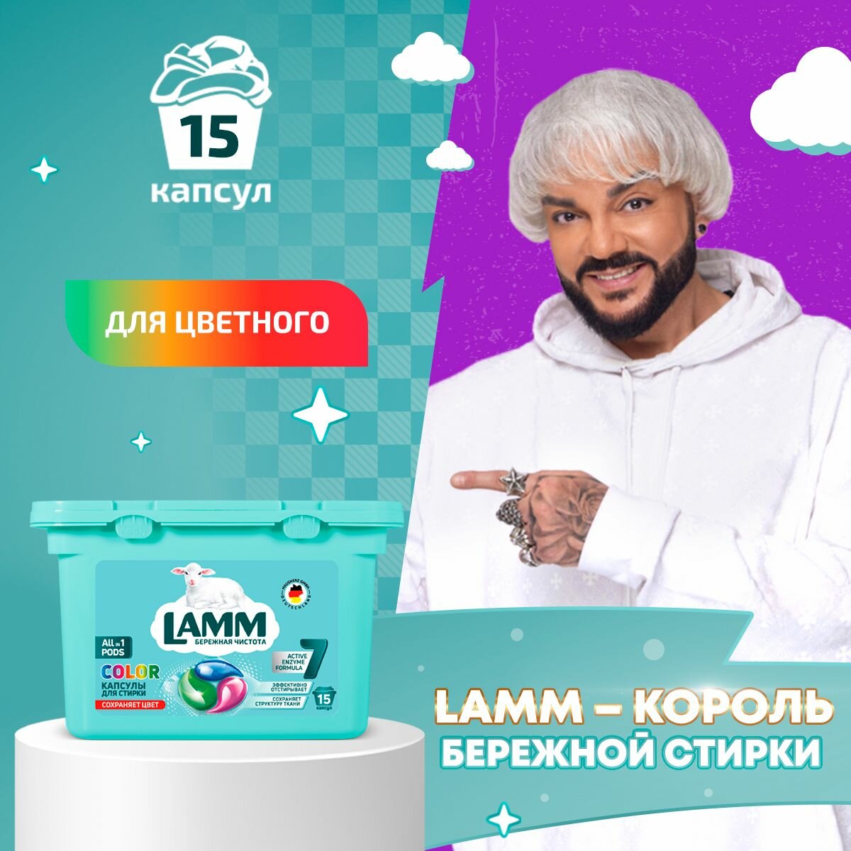 Капсулы для стирки Lamm Color для цветного белья, 15 шт