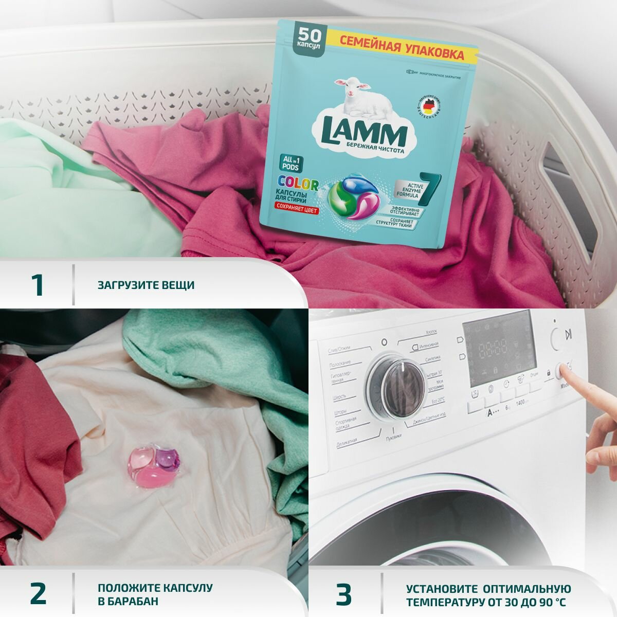 Купить LAMM Color капсулы для стирки цветного белья бесфосфатные 50 шт