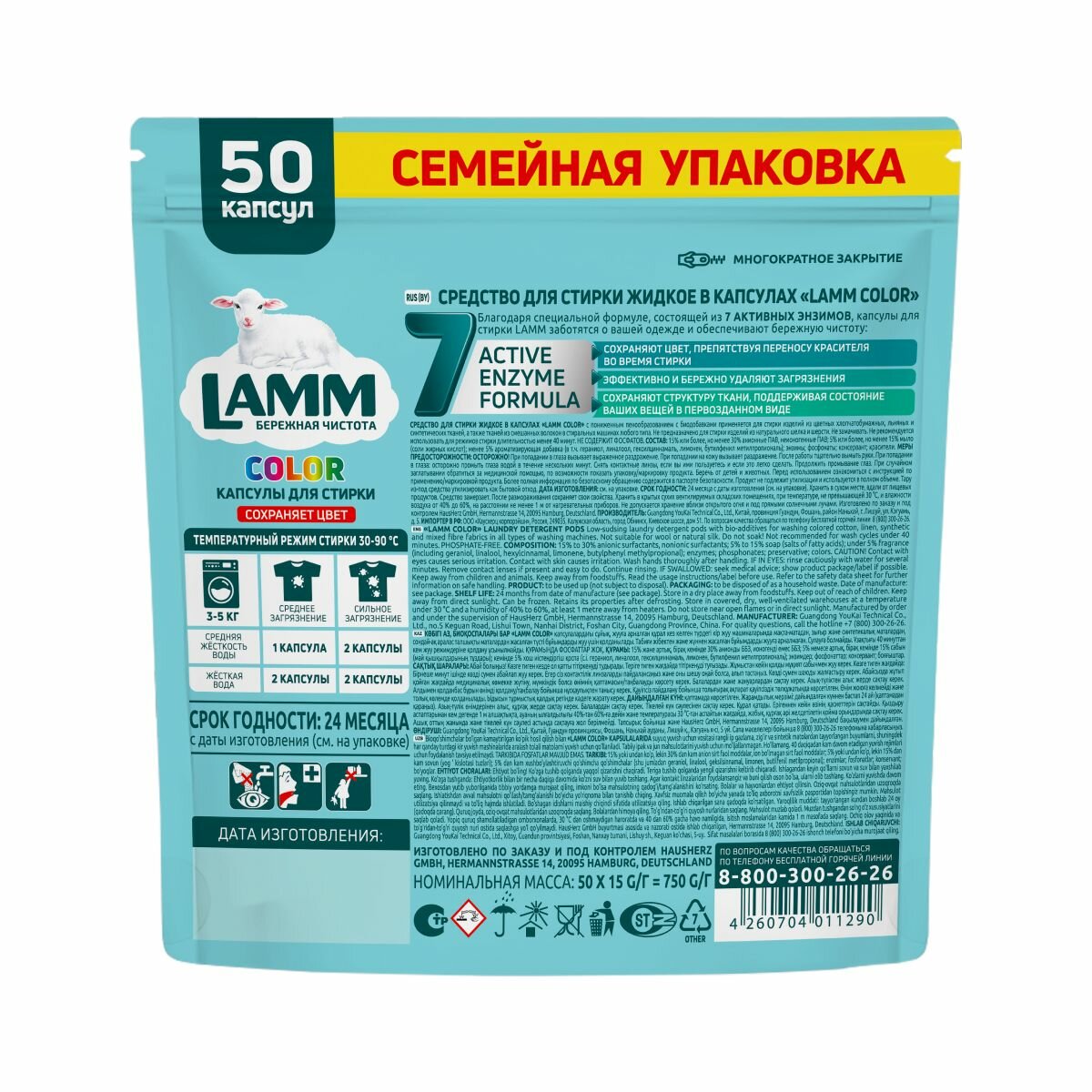 Капсулы для стирки Lamm Color для цветного белья, 50 шт