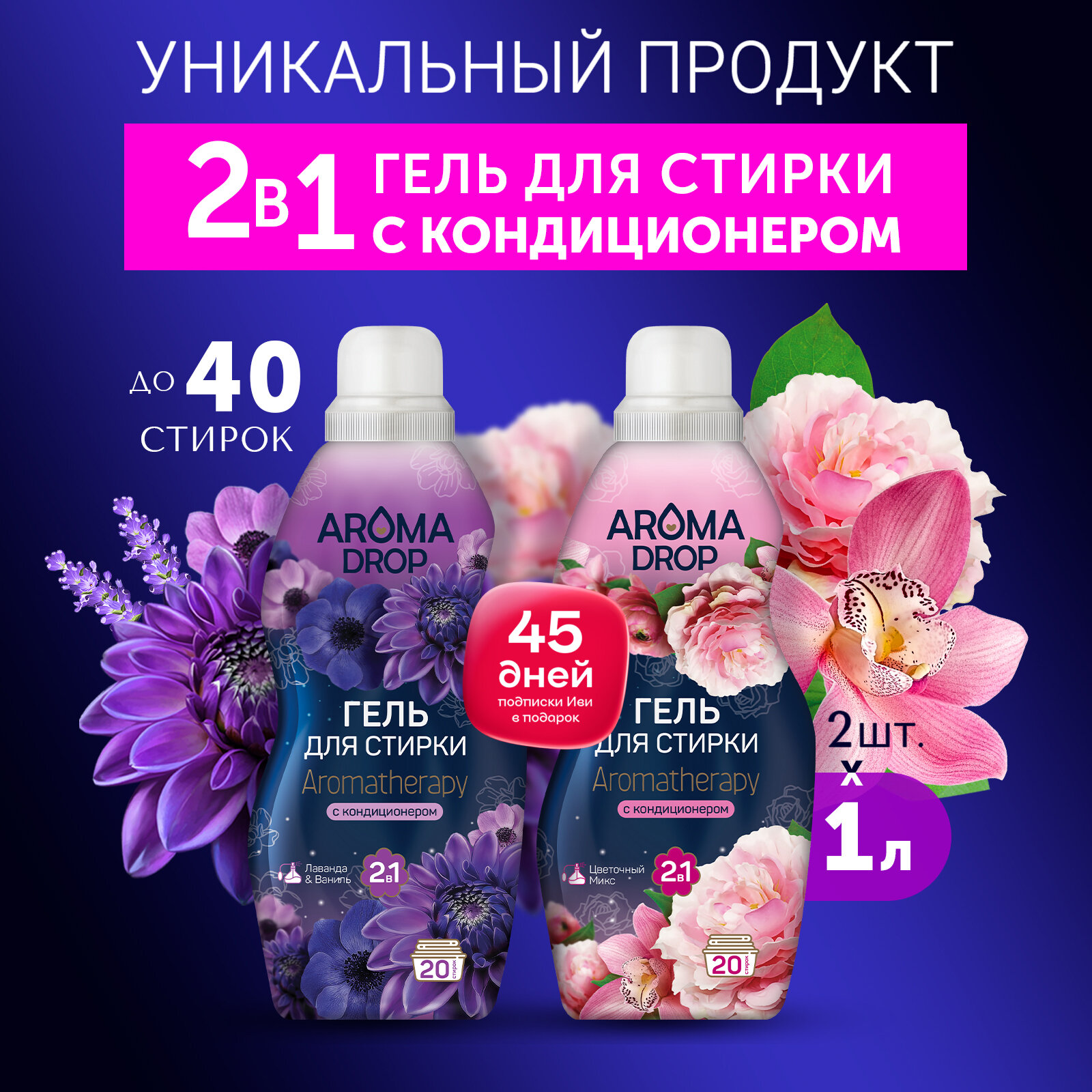 Набор AROMA DROP гель для стирки белья и кондиционер 2 в 1, 1 литр (2 шт)