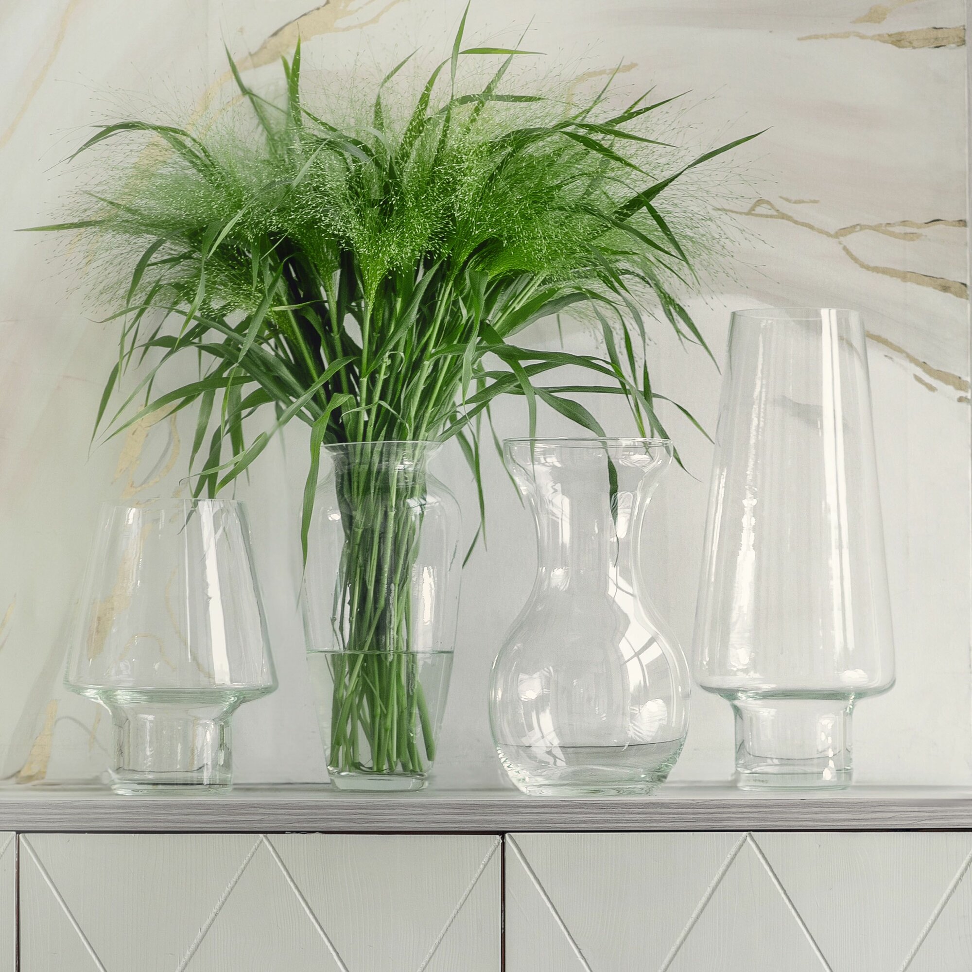 Прозрачная настольная ваза Bogacho Белла из стекла на декоративной ножке для букетов, высоких цветов и сухоцветов
