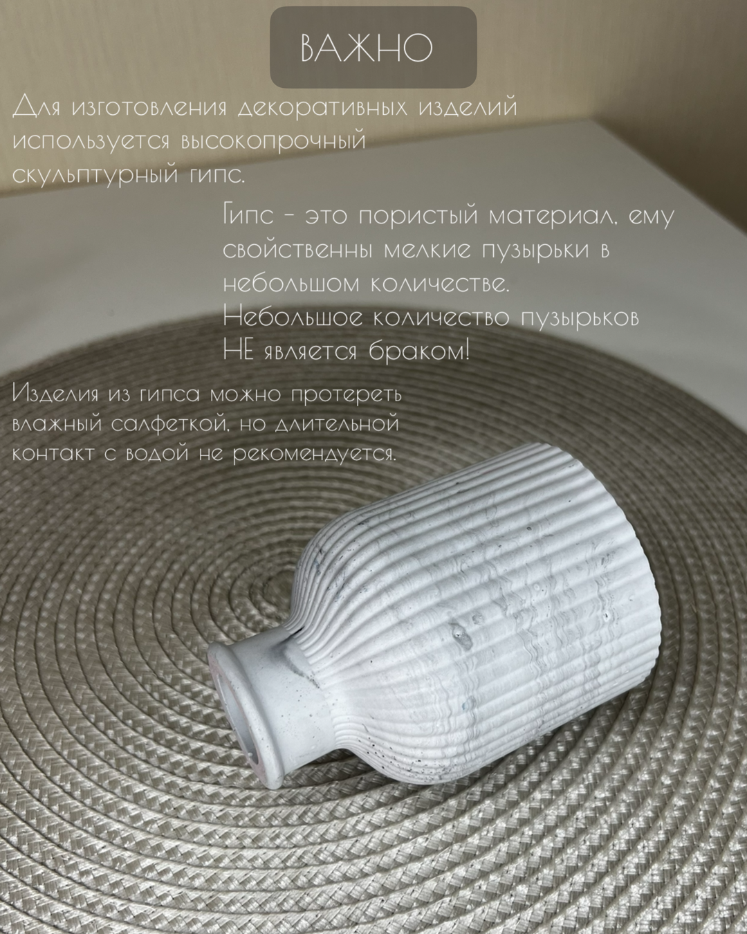 Ваза для сухоцветов из гипса, ваза декоративная, ваза "Сканди"
