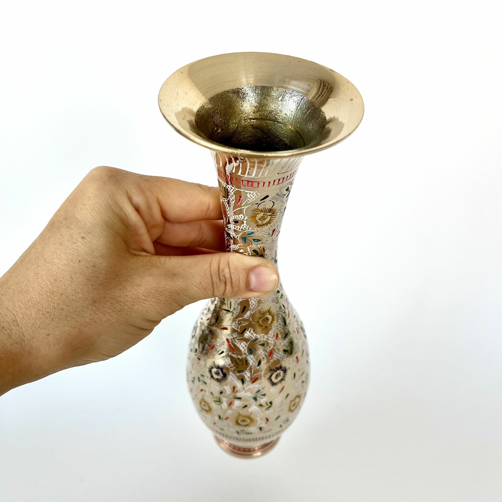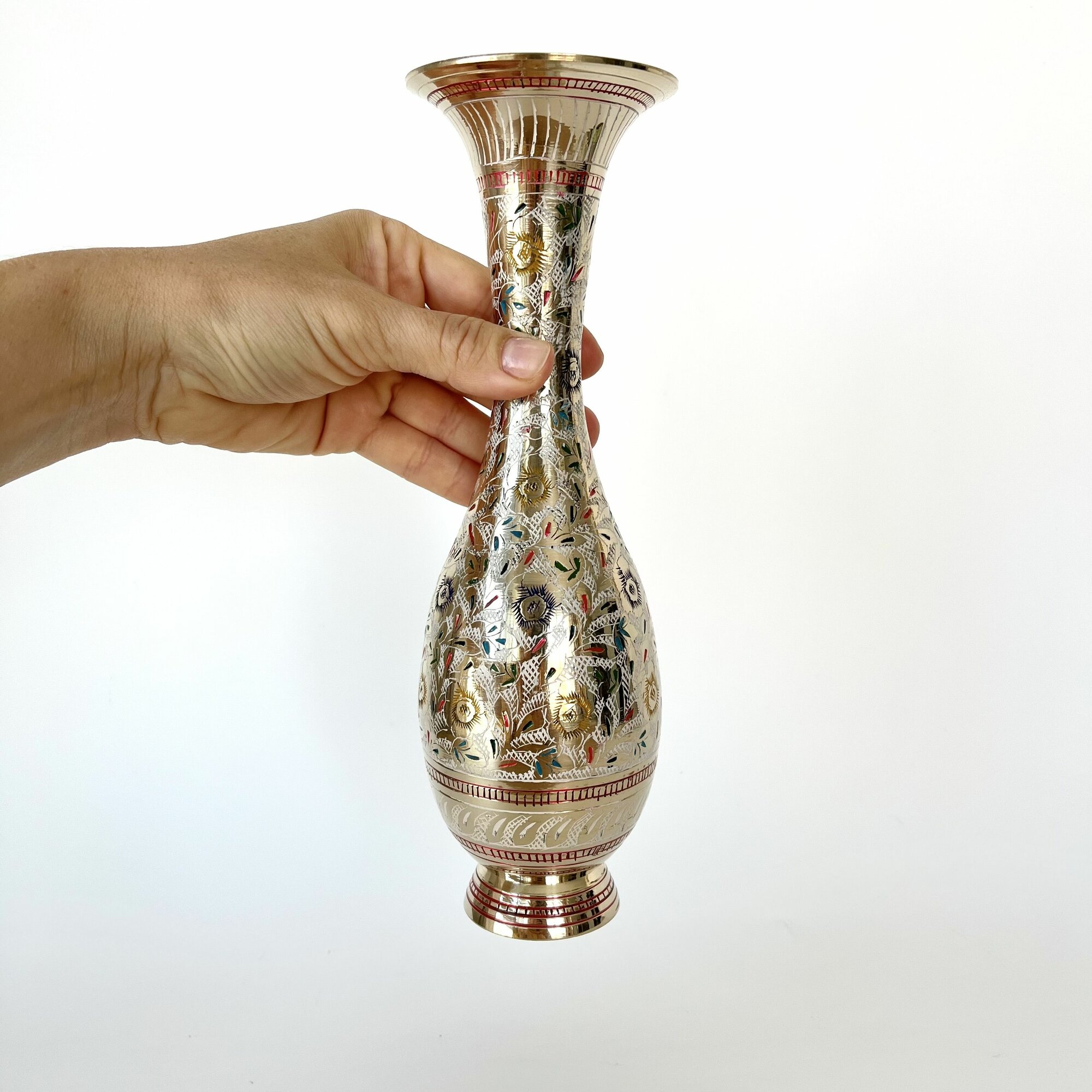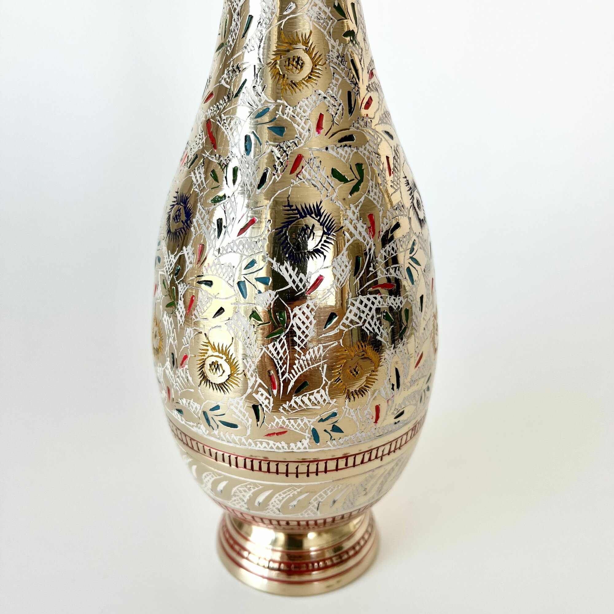 Ваза металлическая, латунь, эмаль, высота 25см, ручная работа, Индия подарок учителю