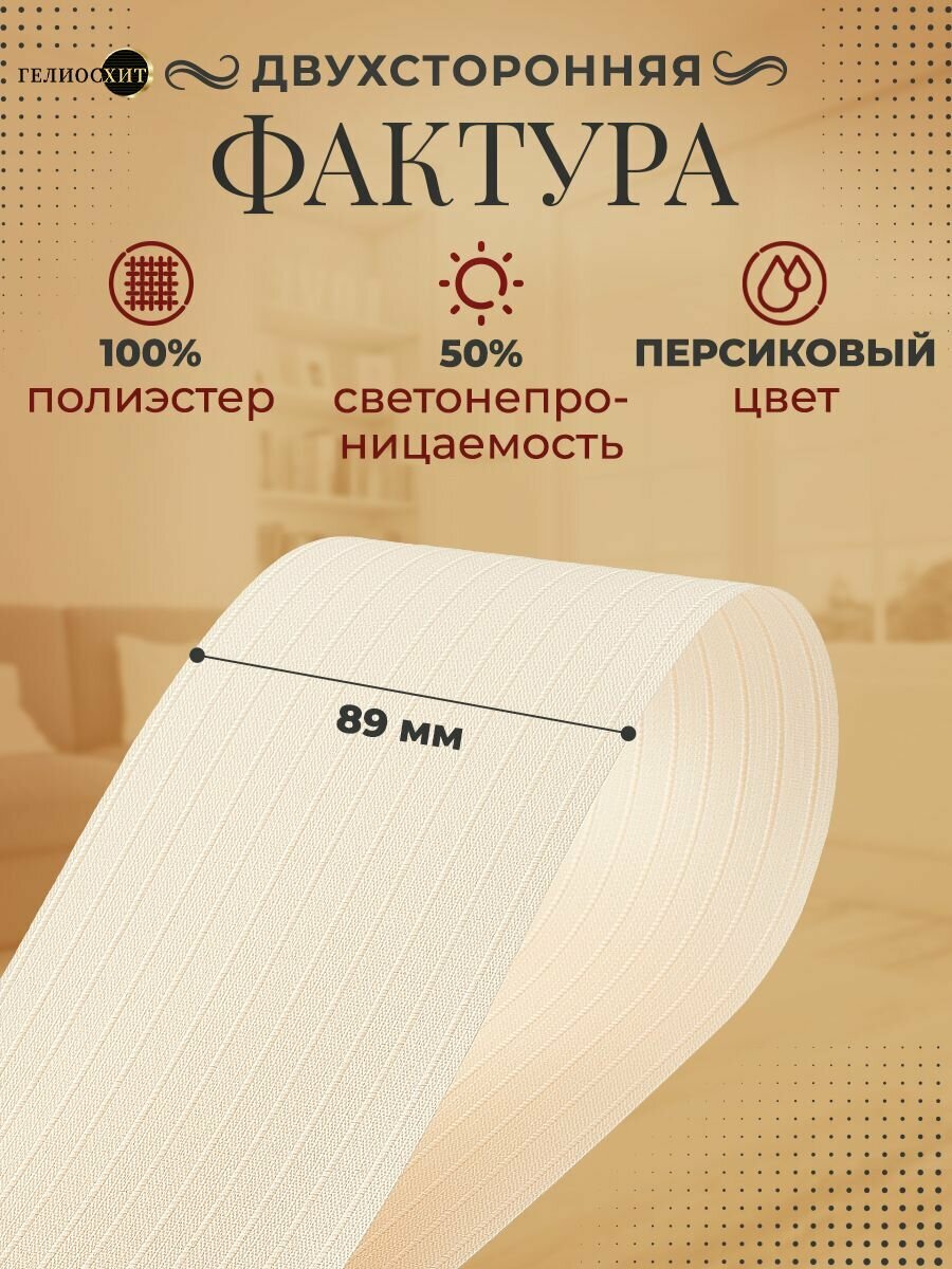 Ламели для вертикальных жалюзи 25 шт высотой 250 см персиковые, ткань Лайн, гелиосхит, карниз приобретается отдельно.