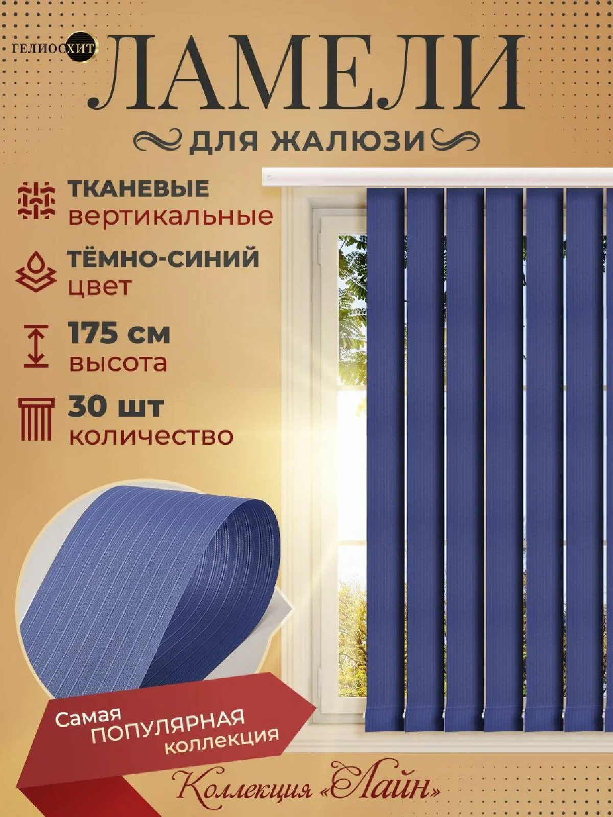 Купить Ламели для вертикальных жалюзи 30 шт высотой 175 см темно-синего цвета (карниз приобретается отдельно) коллекция лайн