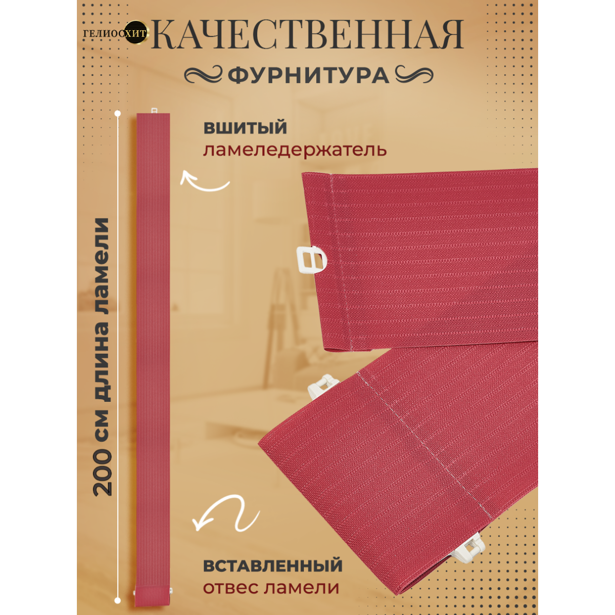Ламели для вертикальных жалюзи 15 шт высотой 245 см темно-красного цвета, карниз приобретается отдельно, гелиосхит.