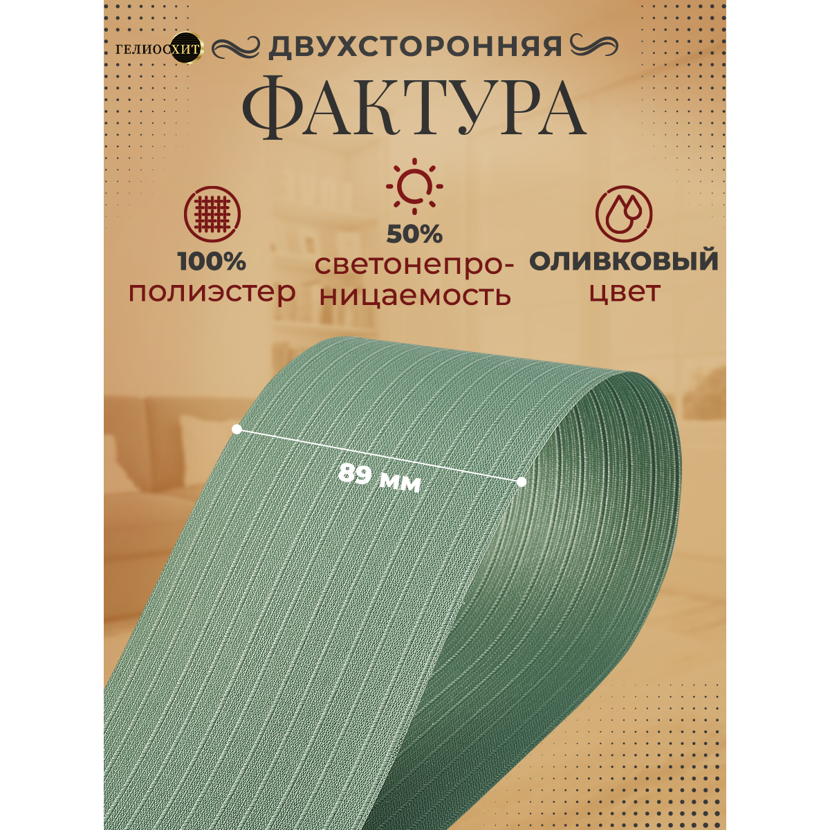 Ламели для вертикальных жалюзи 10 шт высотой 185 см оливкового цвета, карниз приобретается отдельно, гелиосхит.