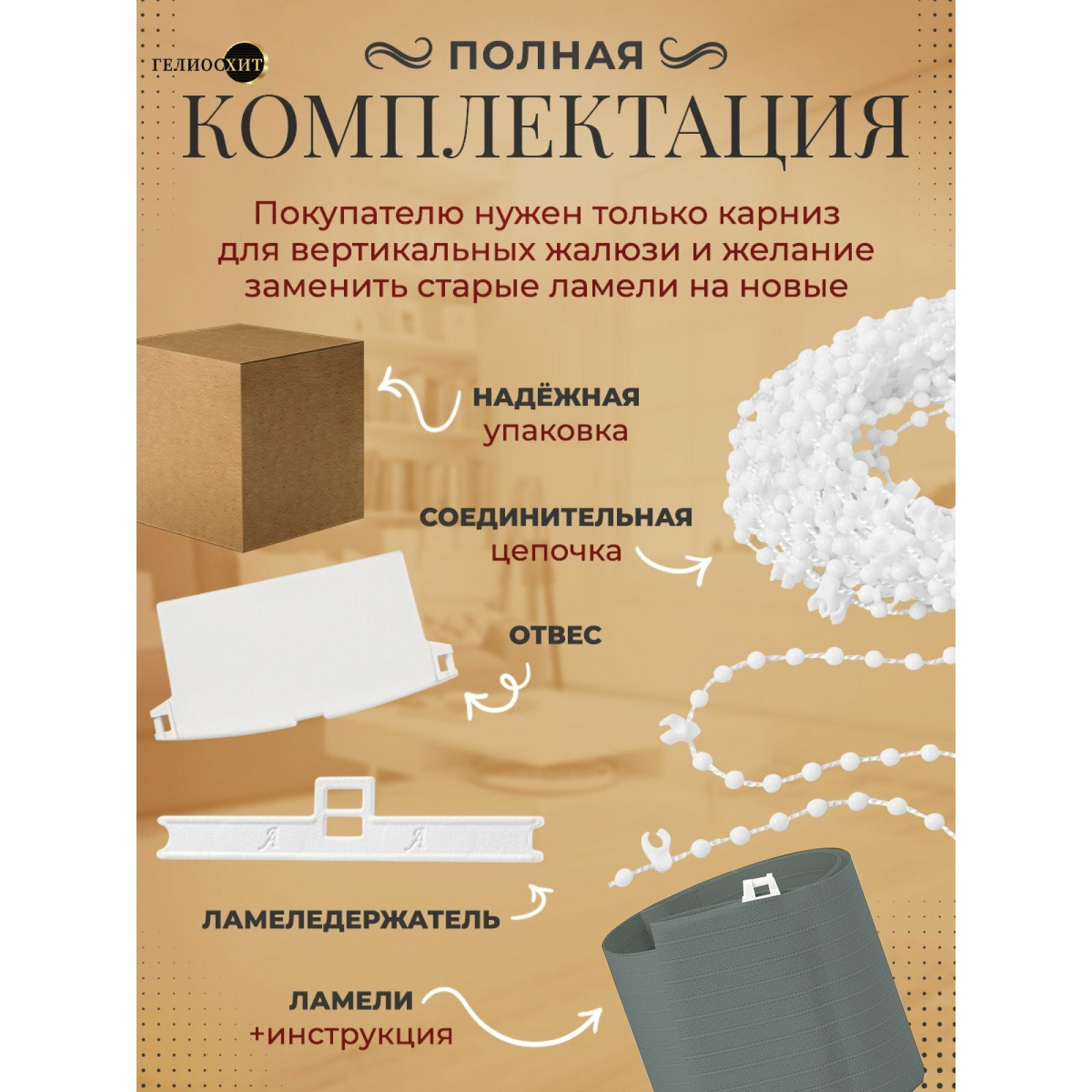 Ламели для вертикальных жалюзи 10 шт высотой 215 см цвет мокрый асфальт, карниз приобретается отдельно, гелиосхит.
