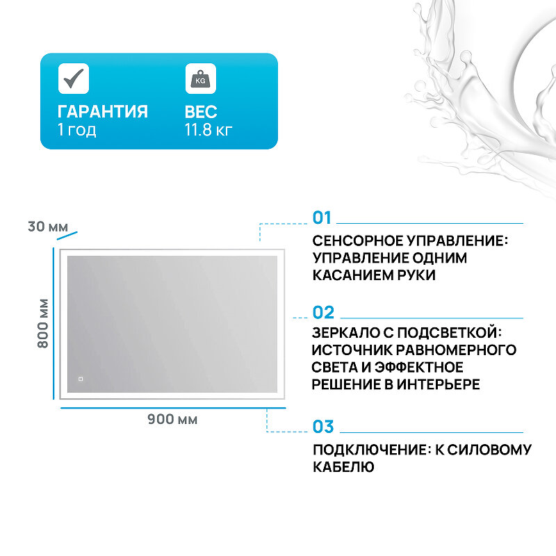 | Особенности | без рамы, зеркало-шкаф, подогрев, подсветка, регулировка яркости подсветки, с рамой, с розеткой, с фацетом, сенсорный выключатель подсветки |