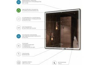 | Комплектация | светодиодная подсветка (последнее поколение светодиодов европейского качества, 50 000 рабочих часов), сенсорный включатель, встроенные часы, функция антизапотевания с таймером отключения 30 минут, набор шурупов и дюбелей для подвешивания зеркала, инструкция по эксплуатации, упаковка. |