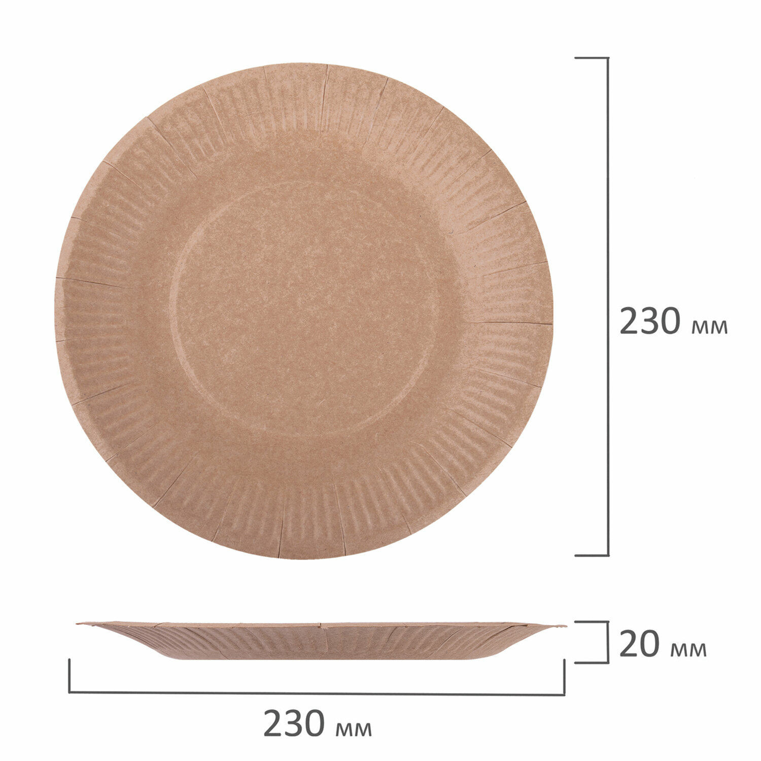 Купить Тарелки одноразовые бумажные (картонная посуда) для праздника, походная на пикник крафт 230 мм, Комплект 100 штук, Laima Eco Craft, 608088