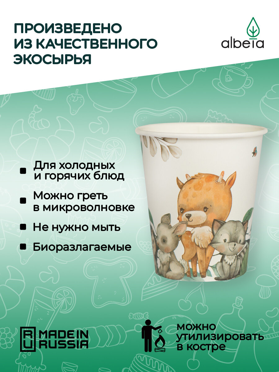 Купить Стаканы одноразовые бумажные для кофе 250 мл набор 50 шт, принт "Лесные звери"
