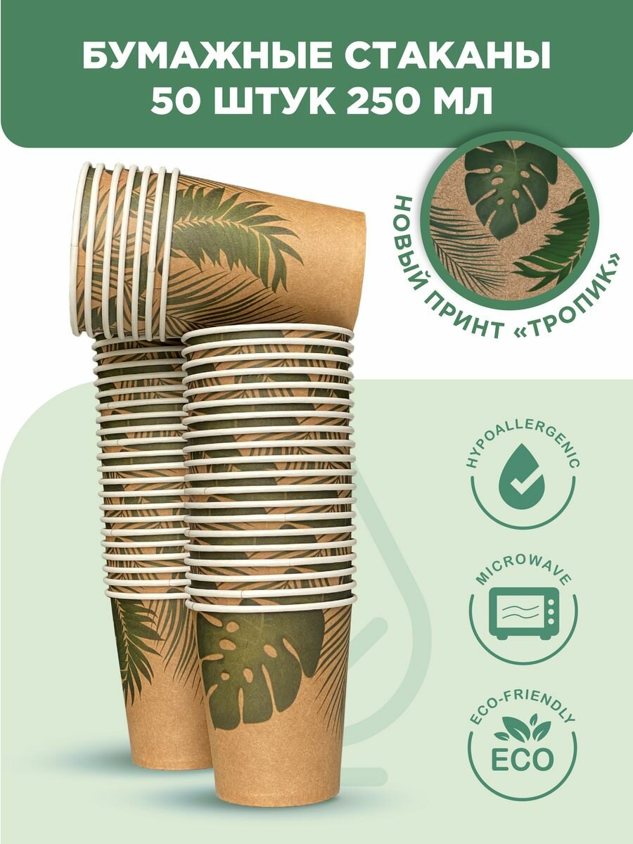 СохранитьСтаканы одноразовые бумажные для кофе 250 мл набор 50 штук , принт "Тропик" интересное: