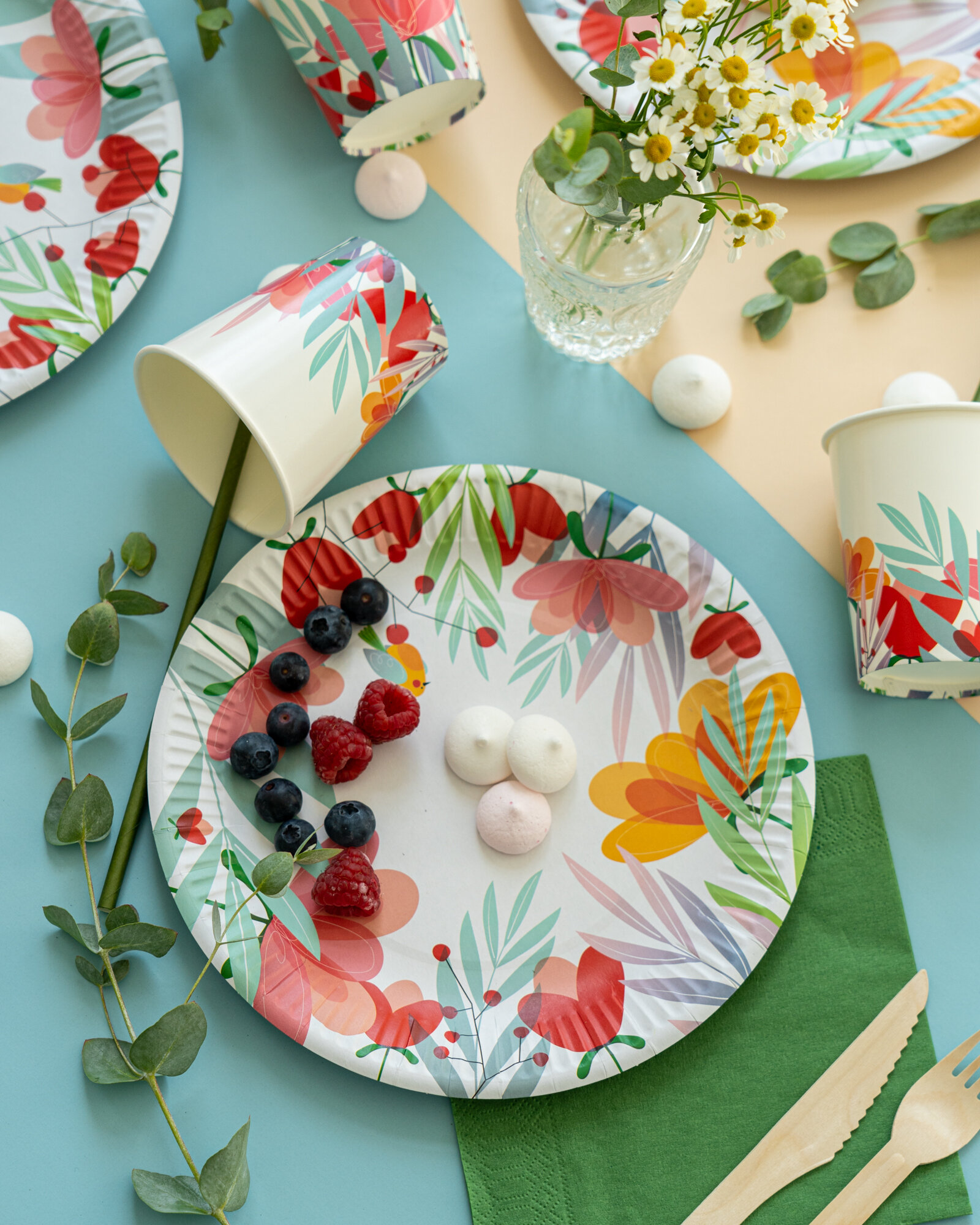 Набор бумажной одноразовой посуды для праздника ND Play / Смола синяя (тарелка 23 см, стакан, по 12 шт.)