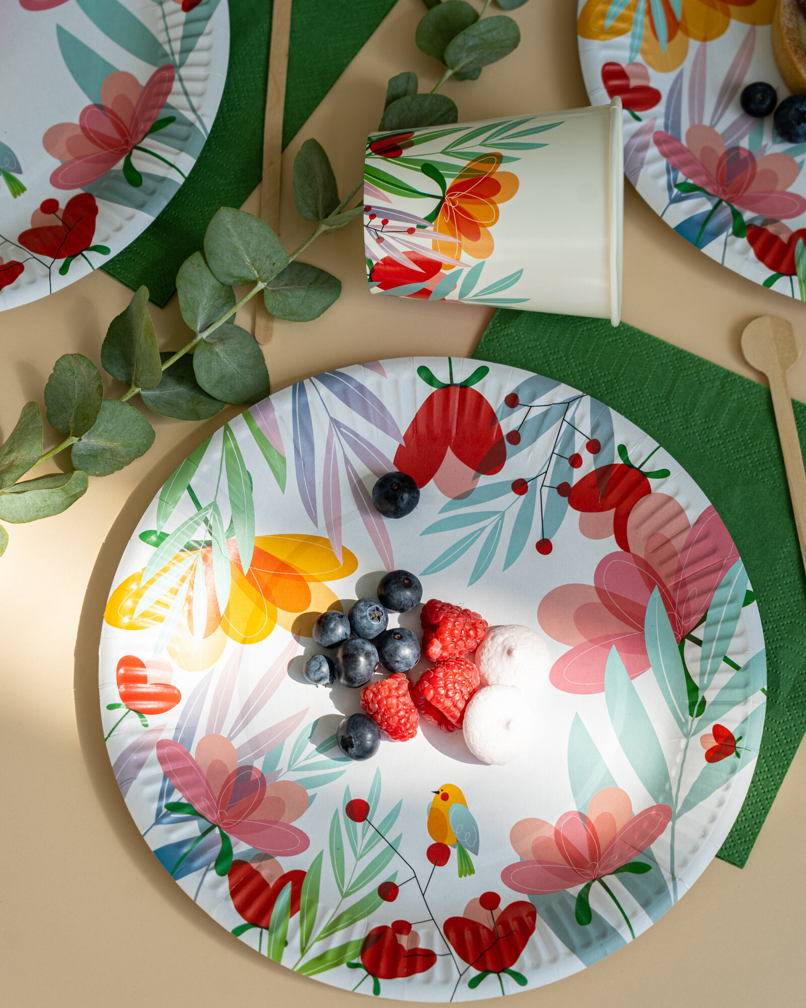 Стаканы одноразовые бумажные стаканчики одноразовые для кофе, принт "Тропик"
