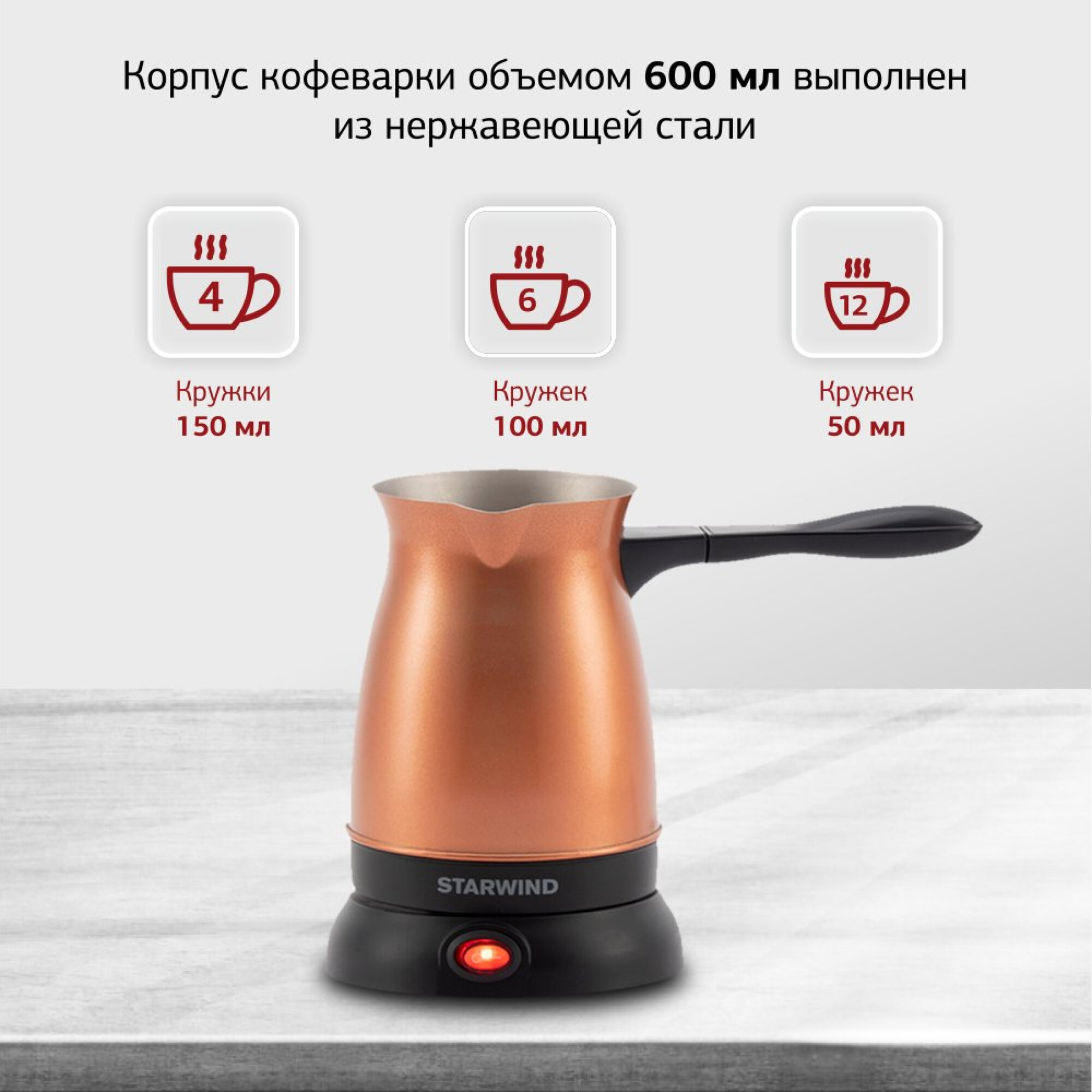 Кофеварка StarWind STG6055, Электрическая турка, медный / черный