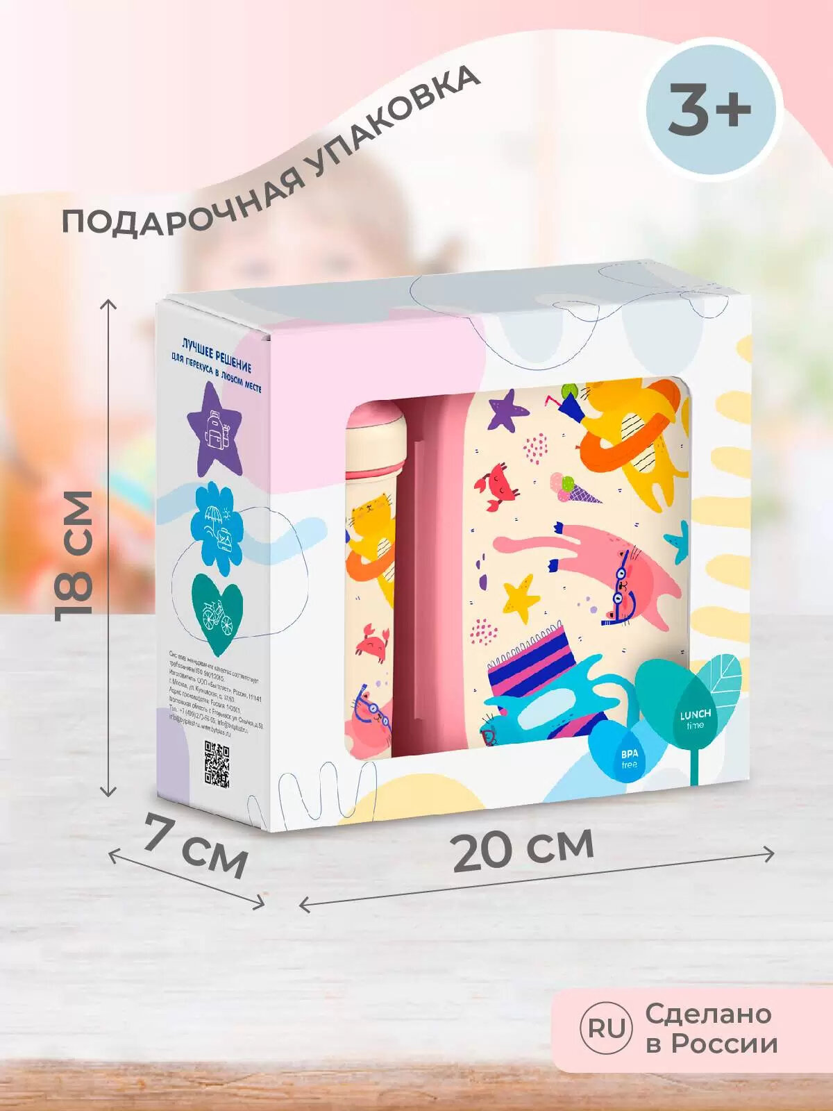 | Дополнительная информация | Бутылка для воды - 16.8 х 7.2 х 7.9 см. Ланч-бокс - 5 х 13 х 18 см. |