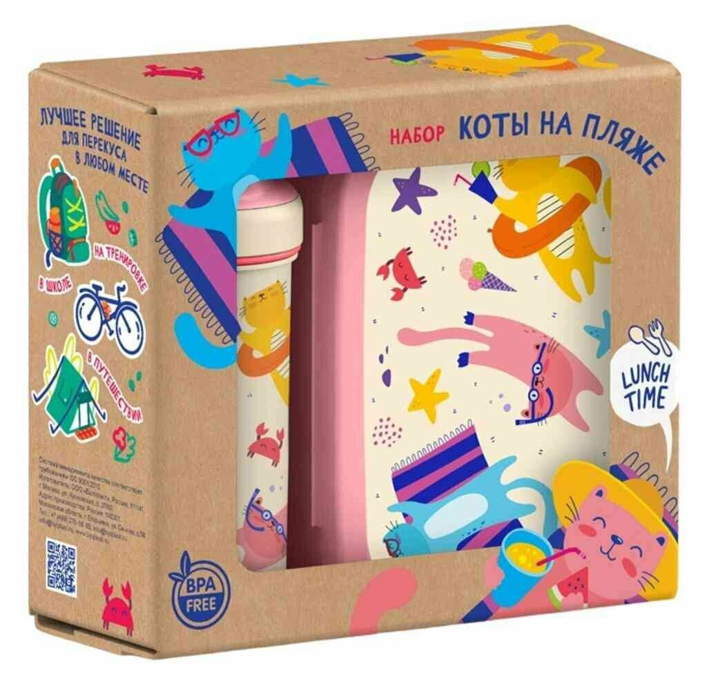 Набор: ланч-бокс 0,98Л и бутылка для воды С петлей 0,4Л С декором (Розовый)
