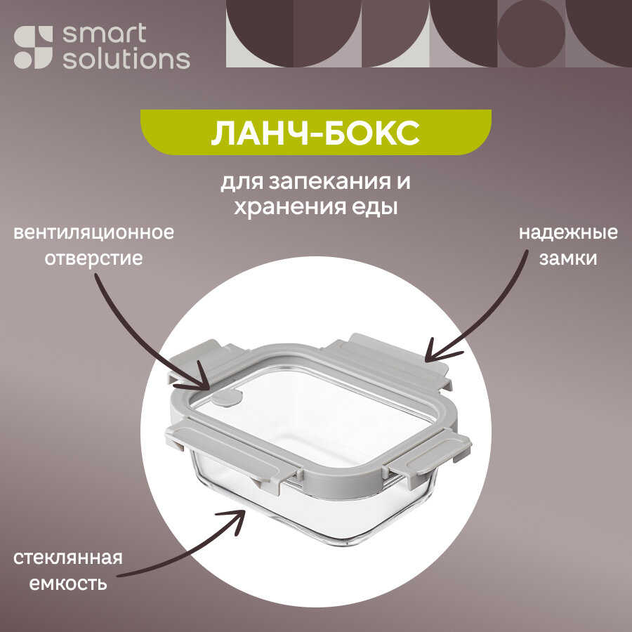 Контейнер для хранения и запекания продуктов на защелках прямоугольный с крышкой 640 мл светло-серый Smart Solutions SS0000236