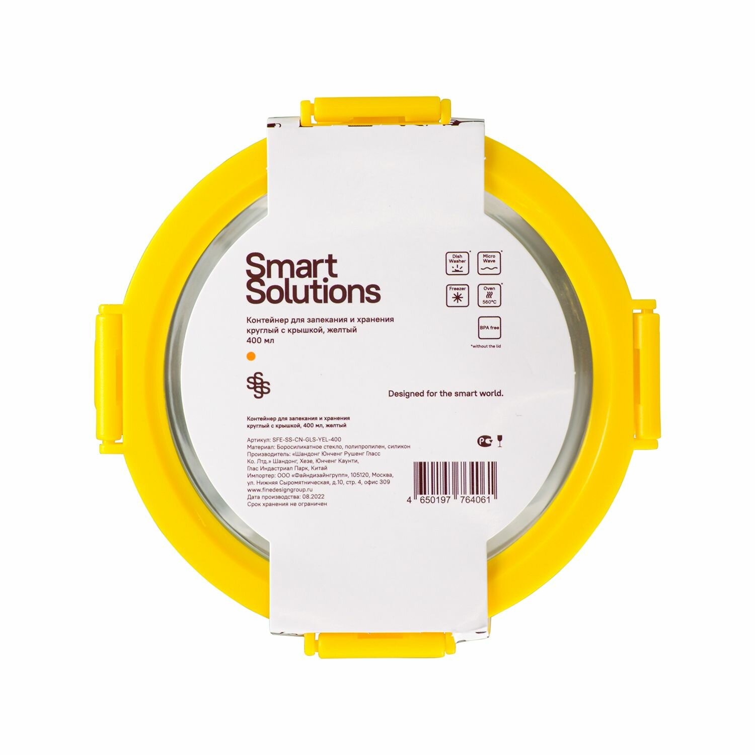 Купить Контейнер Smart Solutions для запекания и хранения круглый с крышкой, 400 мл, желтый (SFE-SS-CN-GLS-YEL-400)