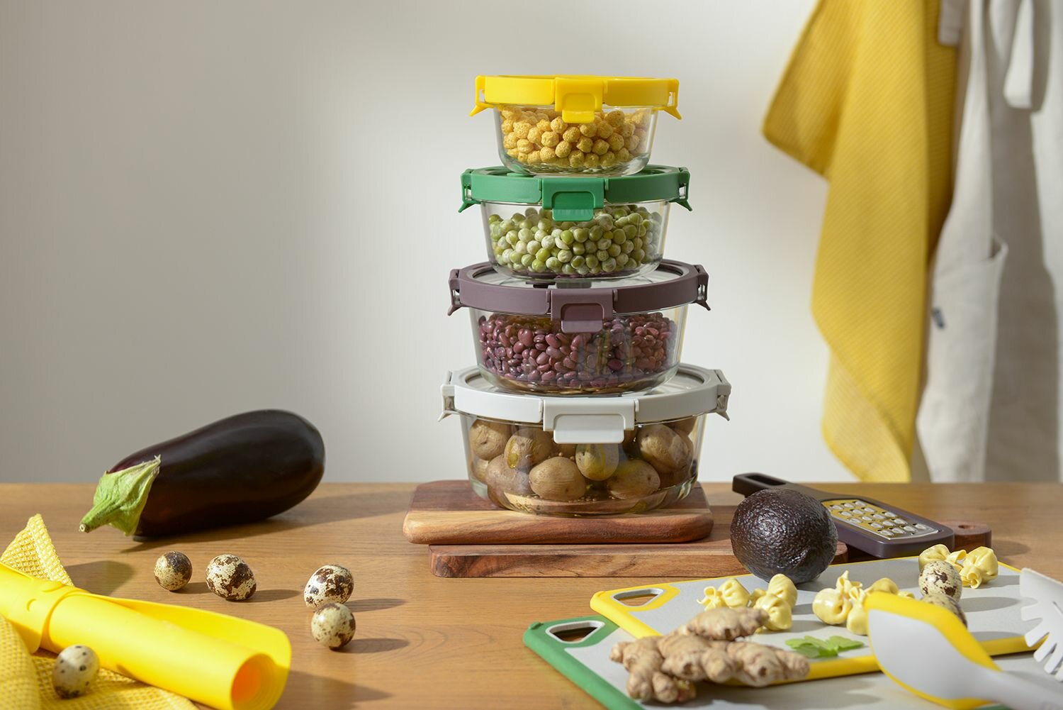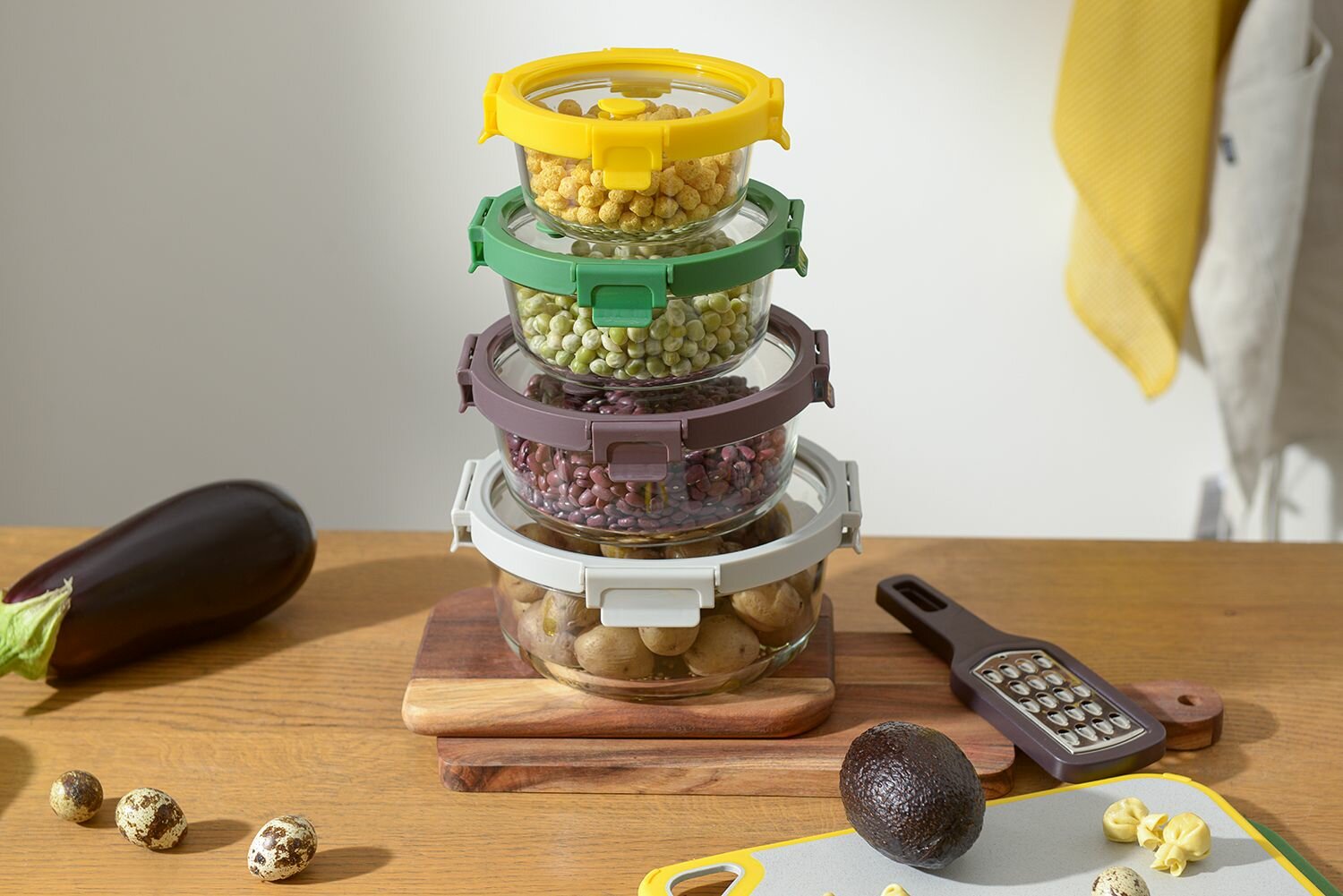 Набор контейнеров для хранения и запекания еды круглые с крышками, 4 шт.