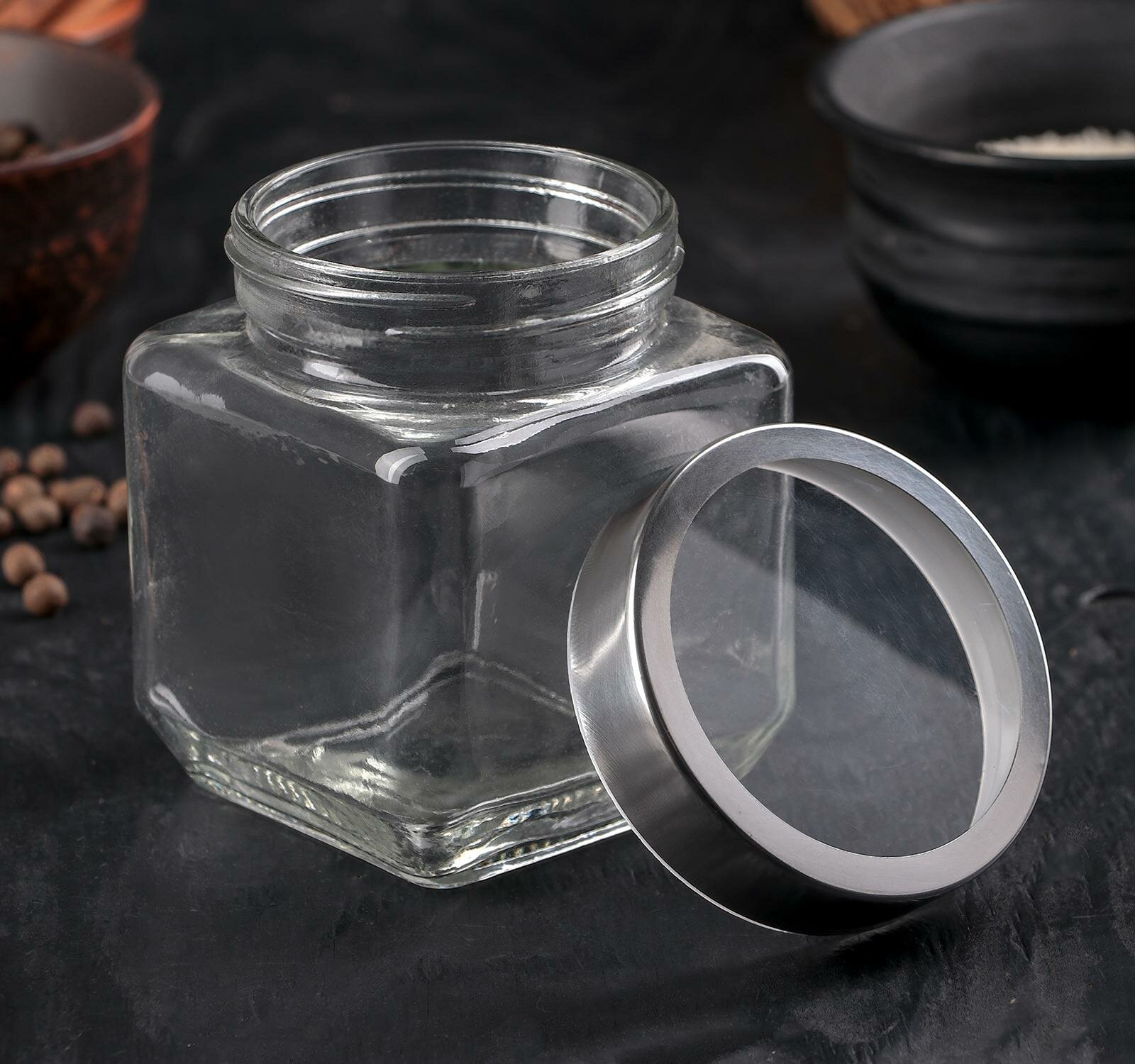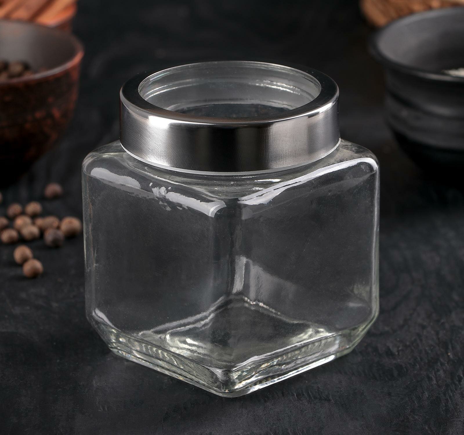 Купить Банка стеклянная для хранения сыпучих продуктов Доляна «Призма», 500 мл, 9×10,5 см, с металлической крышкой