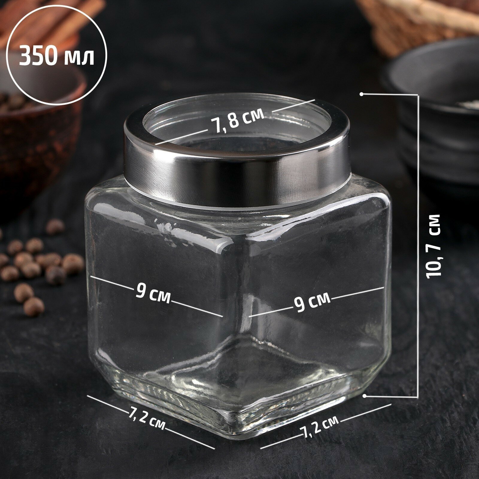 | Дополнительная информация | Банка для хранения специй и других сыпучих продуктов, кухонных и бытовых мелочей. Мыть в ПММ без крышки. |